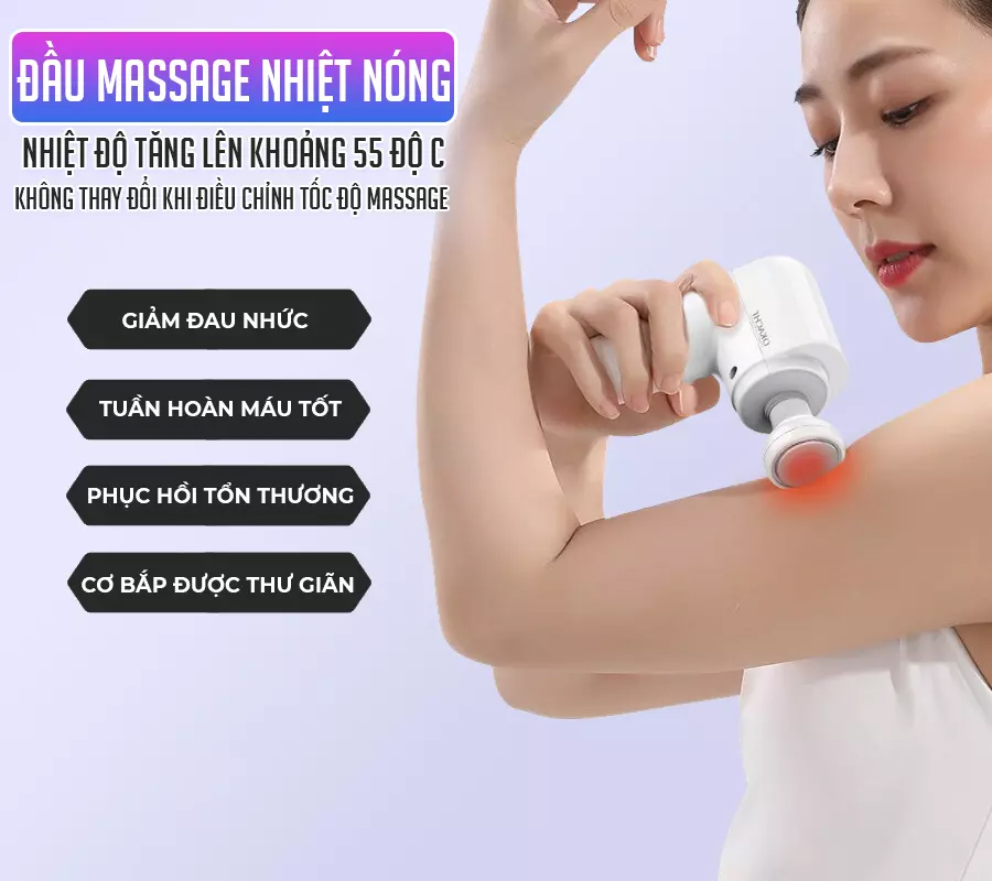 Súng Massage Cầm Tay Okachi JP-G3 Có Đầu Nhiệt Hỗ Trợ Giảm Đau Nhức Nhanh Chóng
