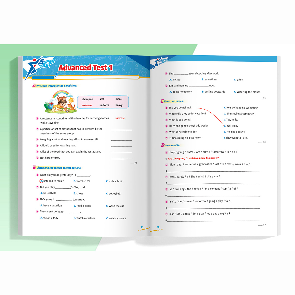 Với Bộ sách Super Test – Đề kiểm tra nhanh Tiếng Anh cho học sinh, bố mẹ sẽ giúp con tiến bộ từng ngày, tự tin với khả năng ngôn ngữ của mình khi ôn luyện Tiếng Anh bởi các bài tập về 4 kỹ năng: Nghe – Nói – Đọc – Viết được liên kết với nhau theo logic của bài học.
