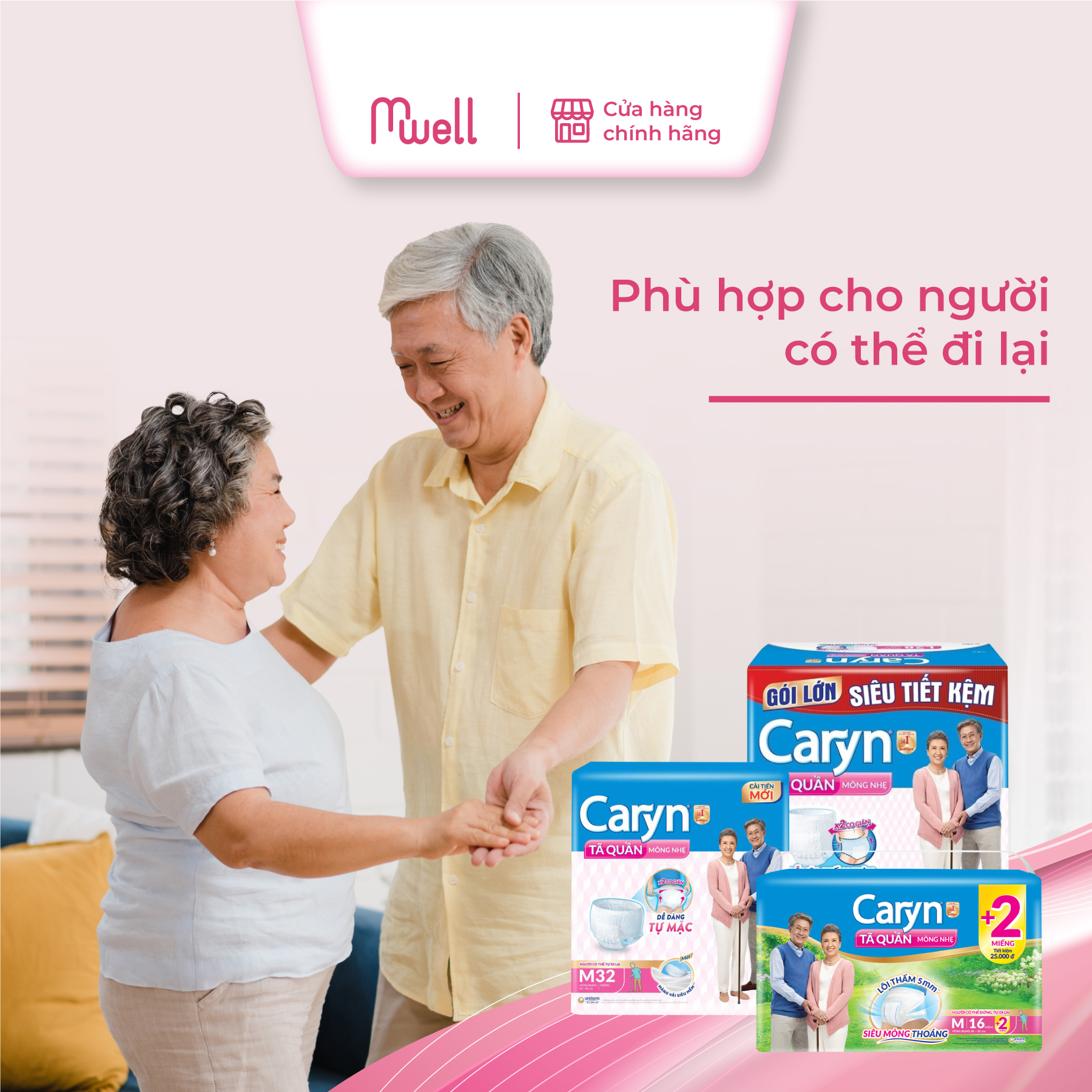 Tã Quần Caryn Mỏng Nhẹ Siêu mỏng nhẹ - Sản phẩm phù hợp với những người gặp vấn đề về bài tiết nhưng vẫn có thể đứng, tự đi lại được, giúp người dùng chủ