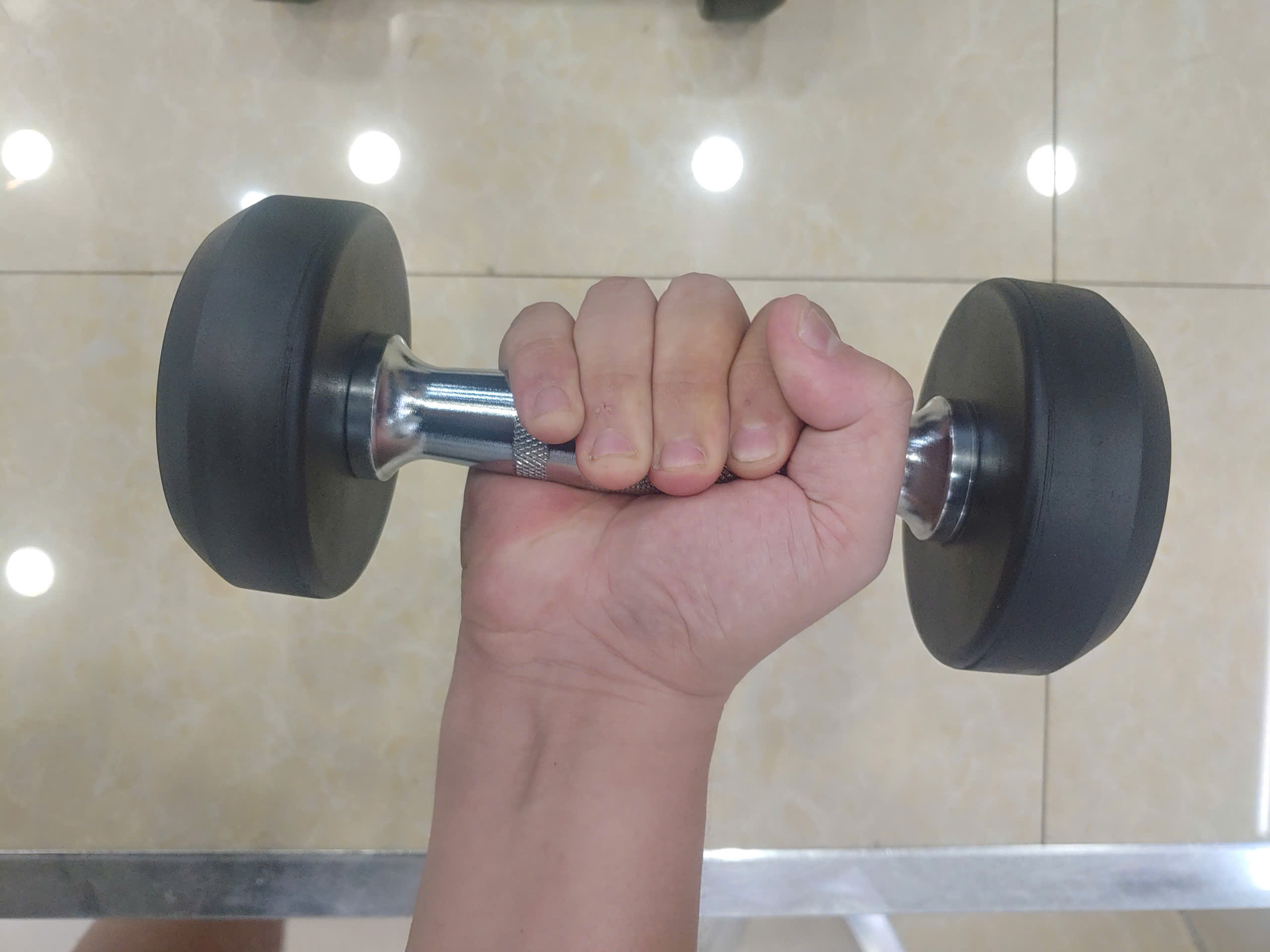 - Chất liệu: Cao su Vinyl, Lõi tạ sắt, Tay cầm mạ crom cao cấp.