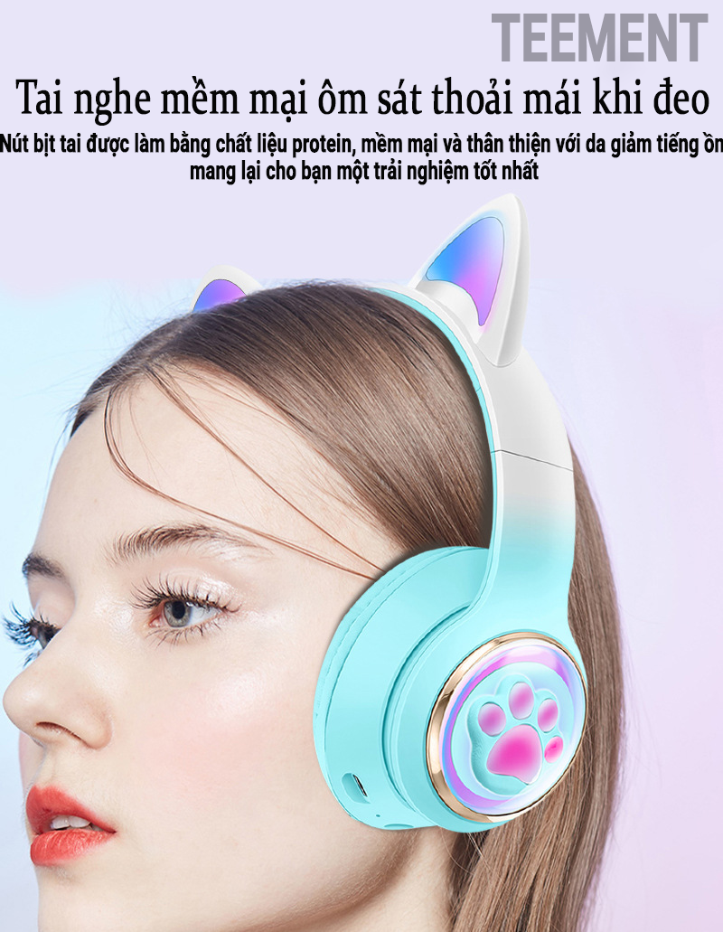 Tai Nghe Bluetooth Tai Mèo Phát Sáng Teement, Tai Nghe Không Dây, Tai Nghe Chụp Tai Bluetooth 5.3, Đèn Led Và Âm Bass Mạnh Mẽ -hàng Chính Hãng Mô tả sản phẩm Tai nghe