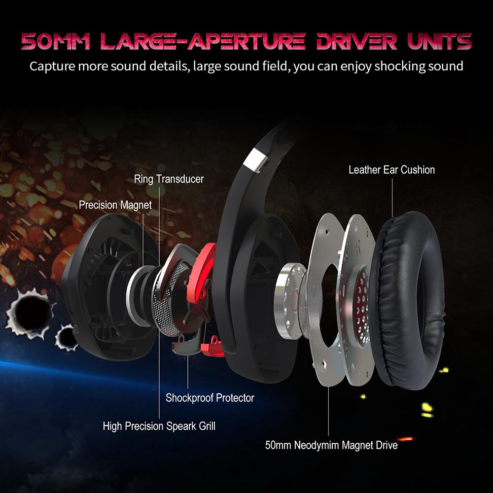 Features: Dual 50mm drivers: Provide a crisp rich sound. Soft sound-proofing earmuffs: Ensure a long time wearing comfort. With microphone: Respond to calling easily when you play games or keep connection with your game friends.