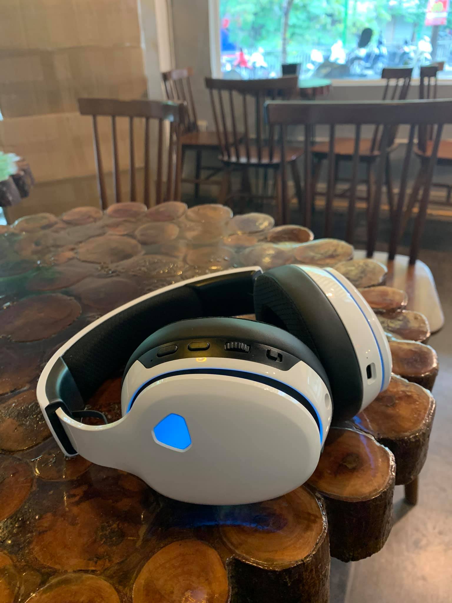Tai nghe Gaming có rung - High-End Stereocó Micro, màu nâu. Hiệu ứng rung âm siêu trầm (Bass Vibration) Màu trắng - thiết kế đèn led đẹp mắt, Lớp đệm mút bọc da màu nâu