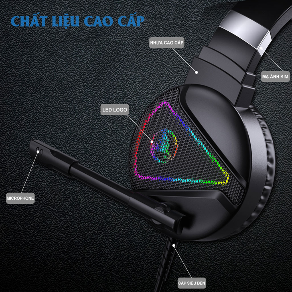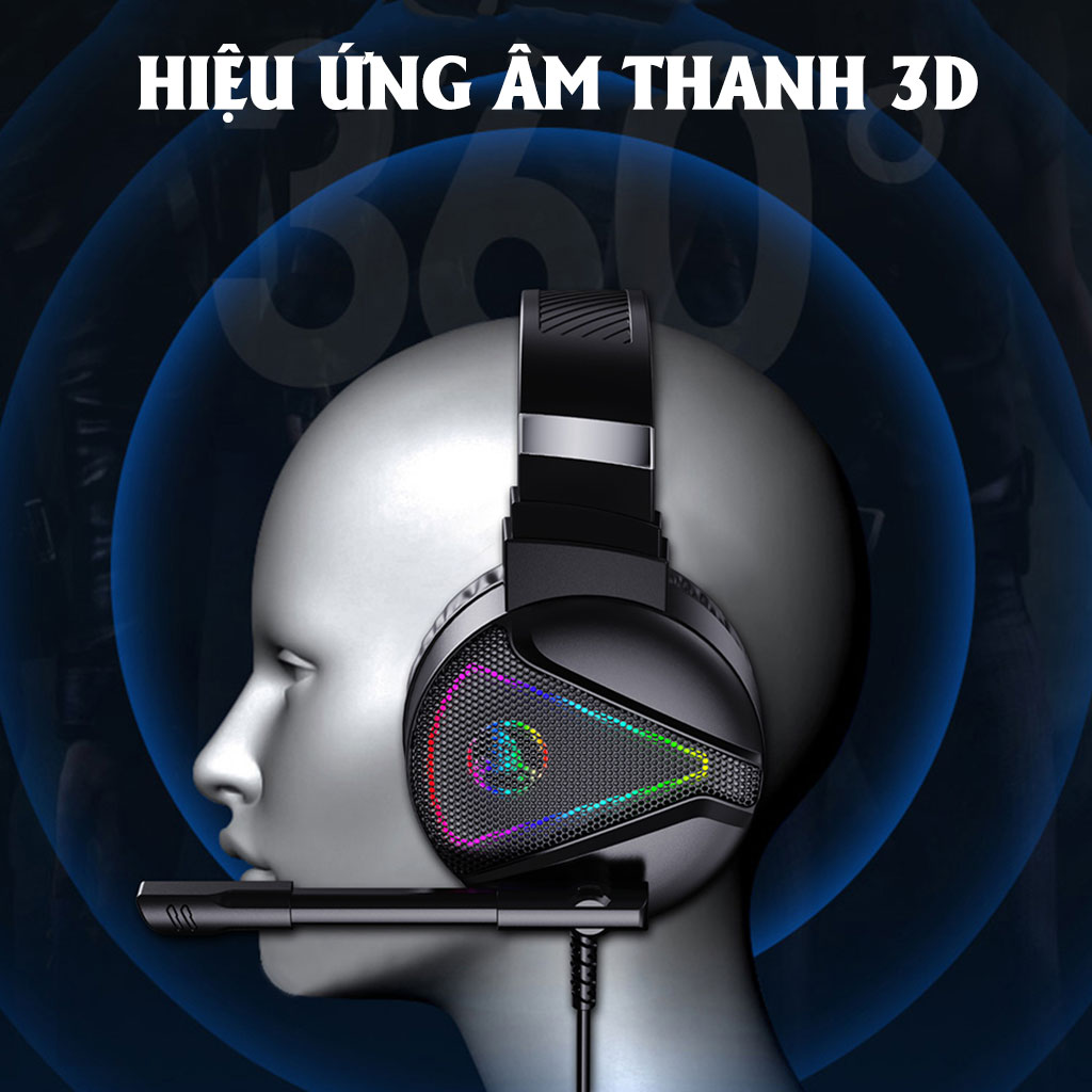 Tai nghe chuyên game có Mic, có đèn Led, dùng cho Pc/Laptop . Với thiết kế hoành tráng, gọng bằng nhựa dẻo có thể bẻ cong 1 cách thoải mái, cùng với chụp tai to,