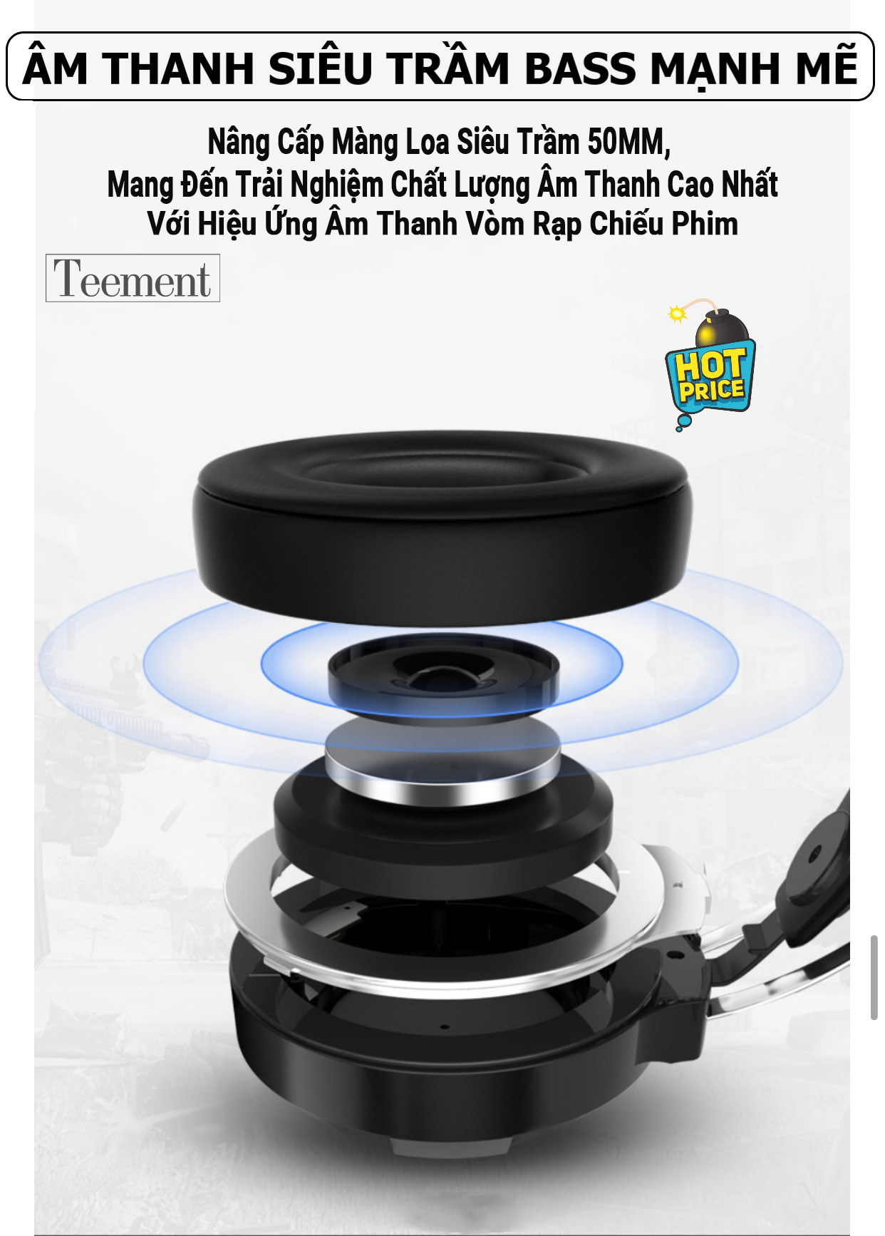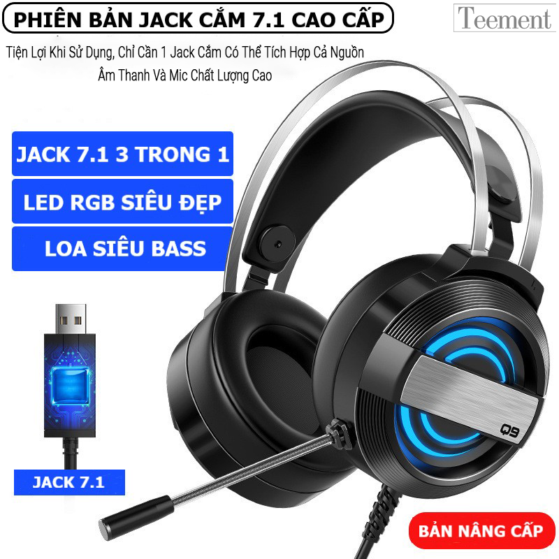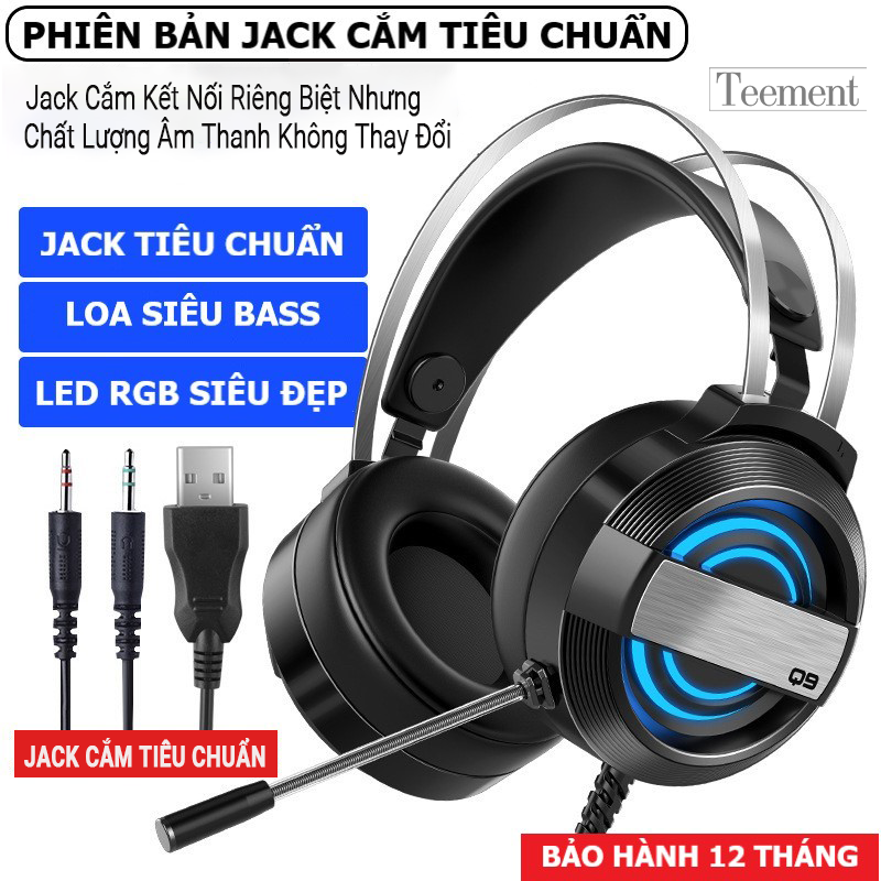 Tai Nghe Chụp Tai Máy Tính Teement TM01 Gaming Mc Q9 Có Đèn Led Đổi Màu, Mic Đàm Thoại, Headphone Chơi Game Trên Laptop, Pc - Hàng Chính Hãng
