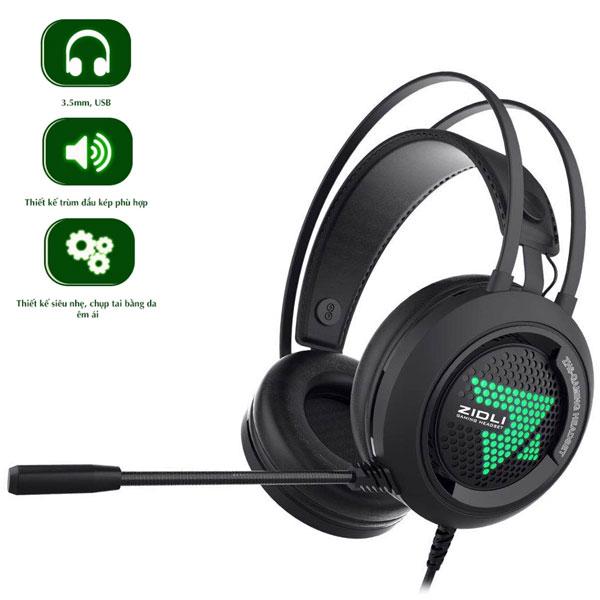 - ZIDLI tai nghe Gaming esport ZH6 3.5mm (3 Jack kết nối: USB LED, Audio, Mic ) trùm đầu, băng đô tự thít, khung sắt gia cố, siêu nhẹ, LED Rainbow , Mic đa hướng, dây dài và chống nhiễu, dùng cho PC (Thiết bị khác cần thêm jack kết nối ) – Born to Fight – Tai nghe quốc dân