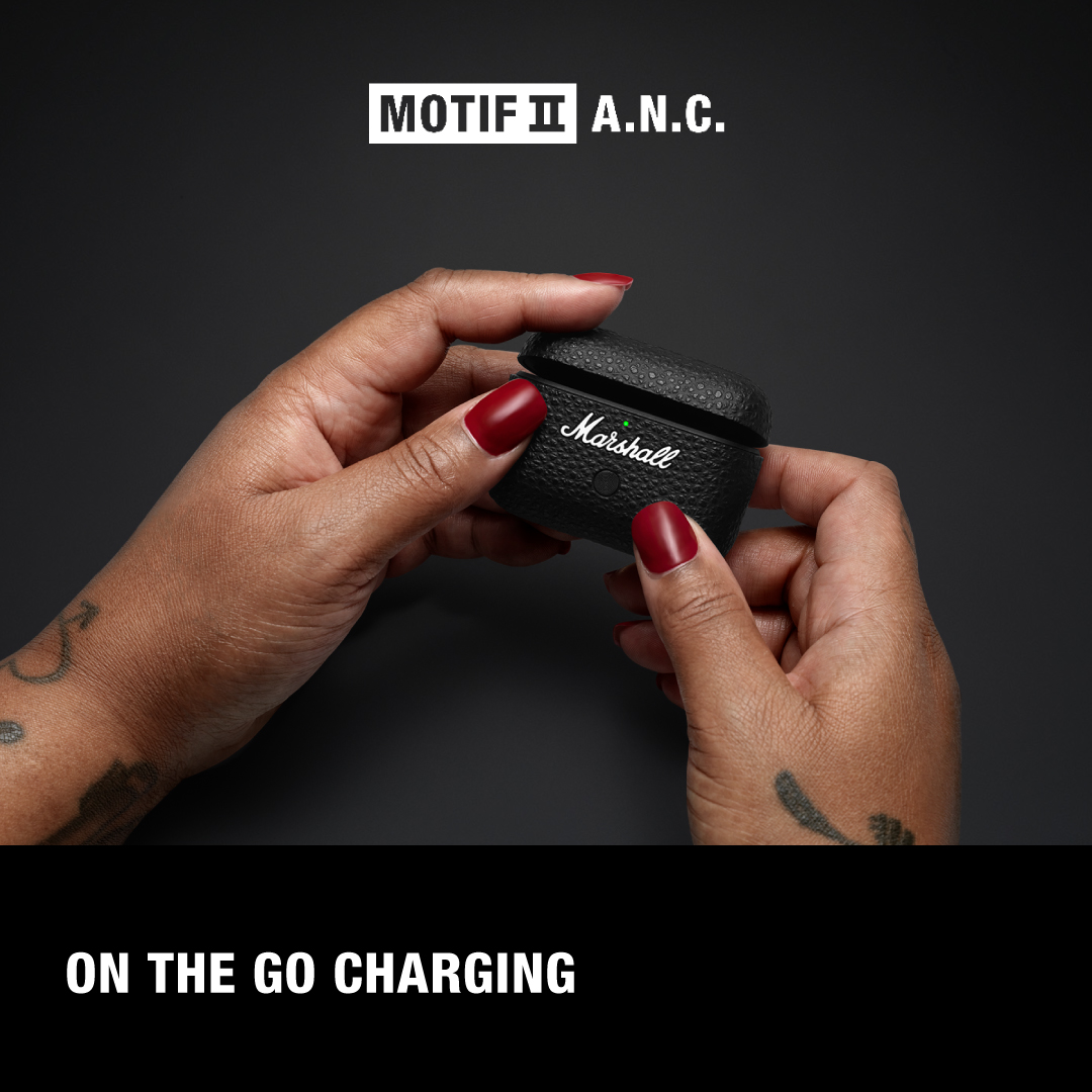 Giới thiệu chất âm mạnh mẽ trong thiết kế hộp sạc gọn nhẹ. Motif II A.N.C. mang đến 30 giờ nghe nhạc, ở bất kỳ đâu bạn muốn. Với công nghệ chống ồn chủ động, bạn sẽ được tận hưởng âm nhạc trọn vẹn mà không bị làm phiền bởi tiếng ồn xung quanh như tiếng tàu điện, hay những con phố ồn ào. Bật chế độ xuyên âm khi đàm thoại để nghe rõ âm thanh bên ngoài. Motif II A.N.C. nay được cải tiến khi thêm một microphone và công nghệ Bluetooth LE hỗ trợ kết nối mạnh mẽ hơn bao giờ hết. Bạn cũng có thể tải Marshall app để cá nhân hóa trải nghiệm nghe nhạc. Với Motif II A.N.C., mọi cung đường luôn sẵn sàng chờ đón bạn.