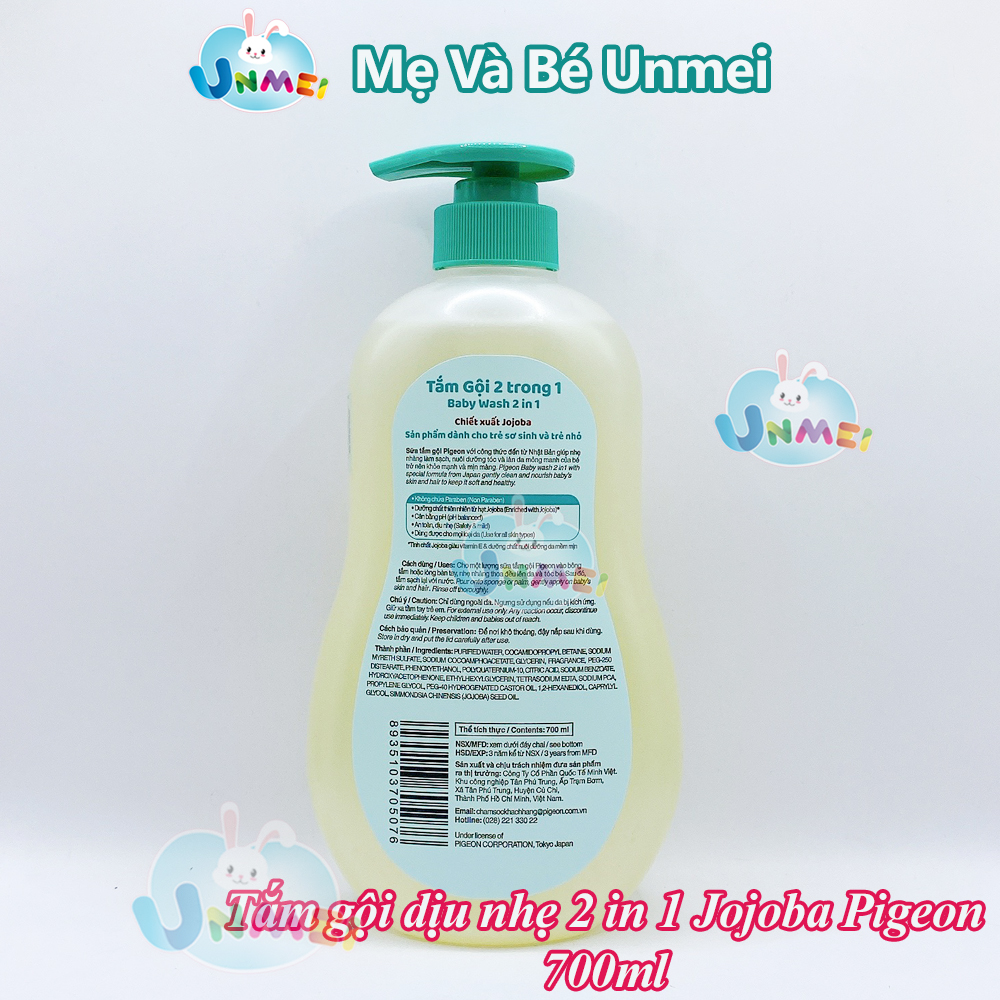 *Đặc Biệt tinh dầu Jojoba có hiệu quả giữ ẩm cao, dễ dàng hấp thụ vào da. Chất giữ ẩm da có trong tinh dầu jojoba giúp hình thành lớp màng giữ ẩm, hạn chế sự mất nước và độ ẩm trên da dưới tác động môi trường xung quanh. Dù da bé trông rất mềm mại và đàn hồi tốt nhưng thực tế da bé ít dầu và mỏng hơn rất nhiều so với người lớn. Da của bé cần được chăm sóc đặc biệt hơn, vì vậy hãy bảo vệ da bé bằng các sản phẩm chăm sóc da đặc biệt với công thức dành riêng cho bé. Dung dịch tắm gội dịu nhẹ (2 trong 1) Pigeon chiết xuất từ dầu Jojoba là sự kết hợp của dầu gội và sữa tắm trong cùng một sản phẩm giúp nhẹ nhàng làm sạch tóc, da đầu và toàn thân bé mà vẫn giữ được các chất nhờn sinh lý tự nhiên trên da.