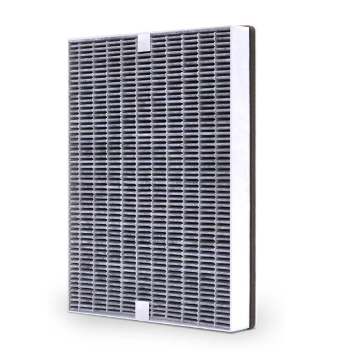 - Tấm lọc giúp giảm lượng hơi TVOC xuống còn 0.01mg/m3 trong không khí nhờ vào than dừa hoạt tính trong tấm lọc Loại bỏ hiệu quả các khí độc hại