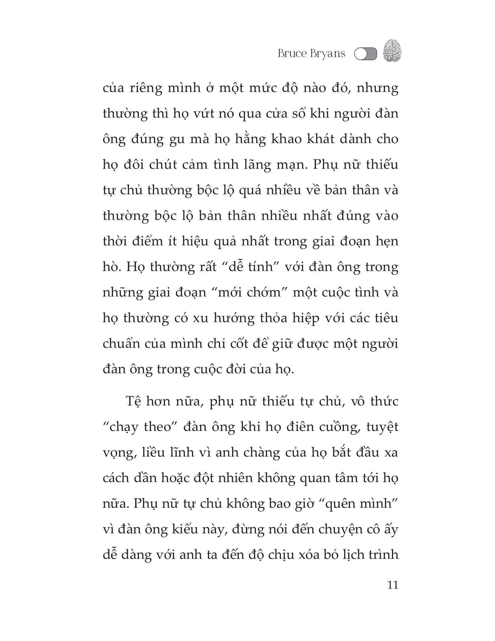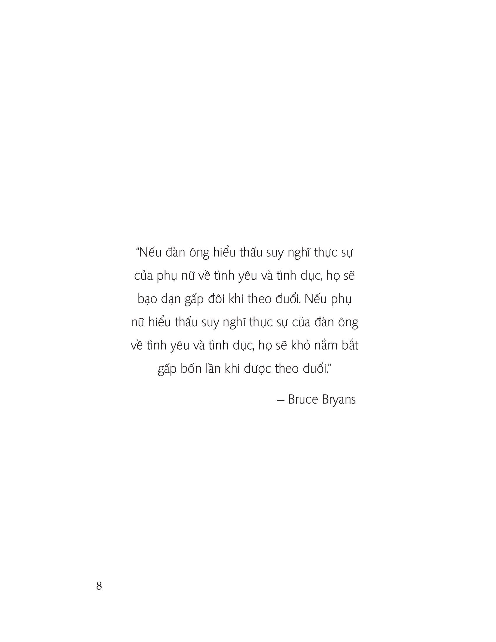 Khi nói đến việc tìm kiếm một người bạn đời phù hợp cho một mối quan hệ nghiêm túc và cam kết, một trong những điều đàn ông mong muốn nhất ở phụ nữ là sự tự chủ, hay nói cách khác là sự đĩnh đạc của phụ nữ. Sự tự chủ ấy sẽ làm tăng giá trị bản thân của người phụ nữ lên gấp nhiều lần. Trong tình yêu, những người phụ nữ ấy luôn biết duy trì sự bí ẩn, sự quyến rũ nữ tính của m.ình để mời gọi đàn ông theo đuổi cô ấy say đắm. Người ta thường nói rằng: “Phụ nữ yêu bằng tai, đàn ông yêu bằng mắt.” Nếu bạn muốn thu hút và duy trì sự chú ý của một người đàn ông có phẩm chất cao - một người có hoãi bão, cam kết một mối quan hệ lâu dài, hay chỉ đơn giản là muốn biết rõ điều m.ình muốn về người ấy,… thì cuốn sách này là dành cho bạn.