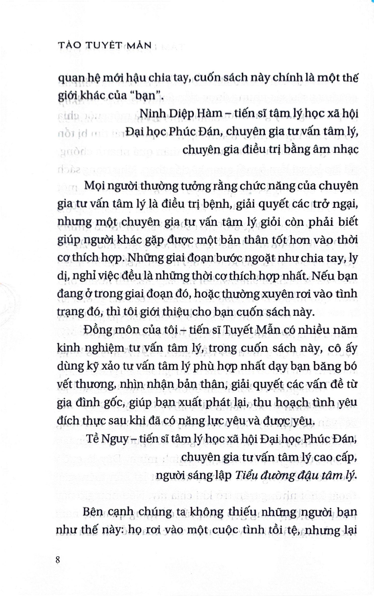 Tâm Lý Học Chia Tay Sau chia tay, ngoại tình, bạo hành, tranh cã làm sao để vượt qua thời kỳ đen tối, tái tạo bản thân? Cuốn sách này sẽ chữa lành bạn bằng lý trí, cung cấp cho bạn những kiến thức khoa học thần kinh liên quan, từng bước chỉ bạn cách nhìn nhận lại bản thân, người cũ cũng như mối quan hệ cũ, tránh cho bạn lý giải sai lầm dẫn đến xử lý sai lầm, cổ vũ bạn sống thật với chính m.ình, dũng cảm mưu cầu một tình yêu thân mật và dài lâu. Chia tay không phải là thảm họa, chia tay chính là thời cơ ngàn năm có một để bạn thêm trưởng thành.