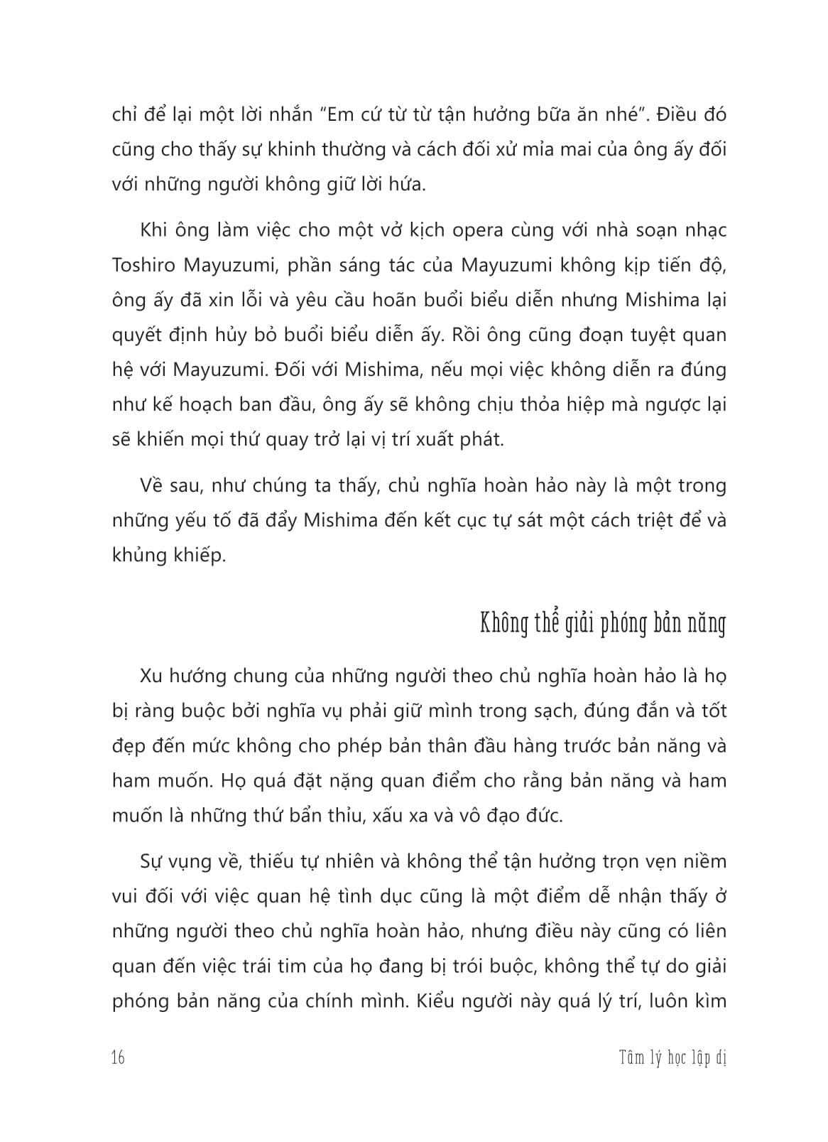 Tâm Lý Học Lập Dị - Bí Mật Của Những Hành Vi Bất Thường Hẹp hòi, ghen tị, nhạy cảm, tự ti, bạo lực, nghi ngờ, nổi loạn, tham lam,… Bạn có thấy những phẩm chất này quen thuộc không? Con người thực chất là một sinh vật đa nhân cách. Mỗi cá nhân đều mang một bản ngã tội lỗi và một con quỷ ẩn sâu bên trong m.ình. Tâm lý bất thường chỉ xuất hiện cực kỳ ngắn ngủi và có thể kiểm soát được trong hầu hết các tình huống. Tuy nhiên, vẫn có những người kéo dài trạng thái này và ngày càng cực đoan hơn, đẩy bản thân vào vùng tâm lý vượt xa lẽ thường. Trên thực tế, nhiều vĩ nhân hay thiên tài trong lịch sử đều bị mắc kẹt trong những căn bệnh tâm lý nghiêm trọng: