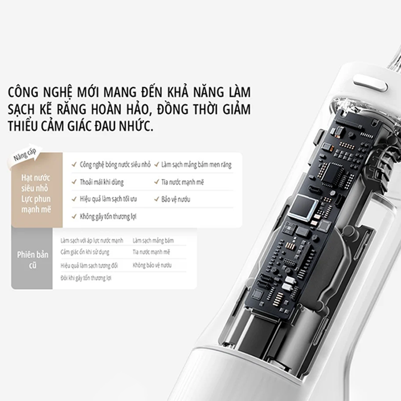 Bạn đang gặp khó khăn trong việc tìm một chiếc máy tăm nước nha khoa chất lượng để vừa có thể làm sạch hiệu quả vừa bảo vệ nướu tối ưu. Bởi nếu sử dụng tăm nước áp lực nước cao và va đập mạnh thì dễ gây chảy máu còn nếu tăm nướcáp lực nước nhỏ, va đập yếu sẽ không làm sạch hiệu quả. Máy tăm nước Xiaomi Mijia MEO705 với 3 chế độ phun tùy chỉnh, công nghệ phun bong bóng micron, 2 vòi chuyên biệt, đầu xịt siêu nhỏ đi kèm pin 90 ngày,... Chắc chắn sẽ là lựa chọn tuyệt vời dành cho người niềng răng, với khả năng loại bỏ gần như 99% mảng bám, giúp làm sạch khoang miệng một cách toàn diện nhất.