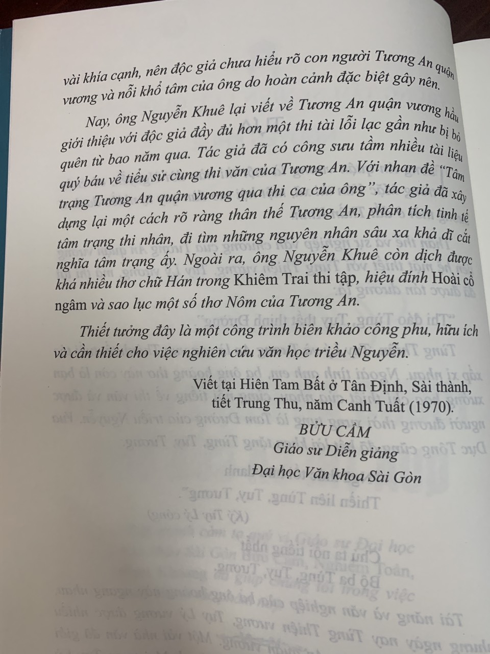 Trung tâm nghiên cứu Quốc học tái bản và phát hành cuốn sách này, với cùng mong muốn của tác giả, có thể đem thơ văn của Tương An đến gần hơn với bạn đọc và giới nghiên cứu văn học Việt Nam.