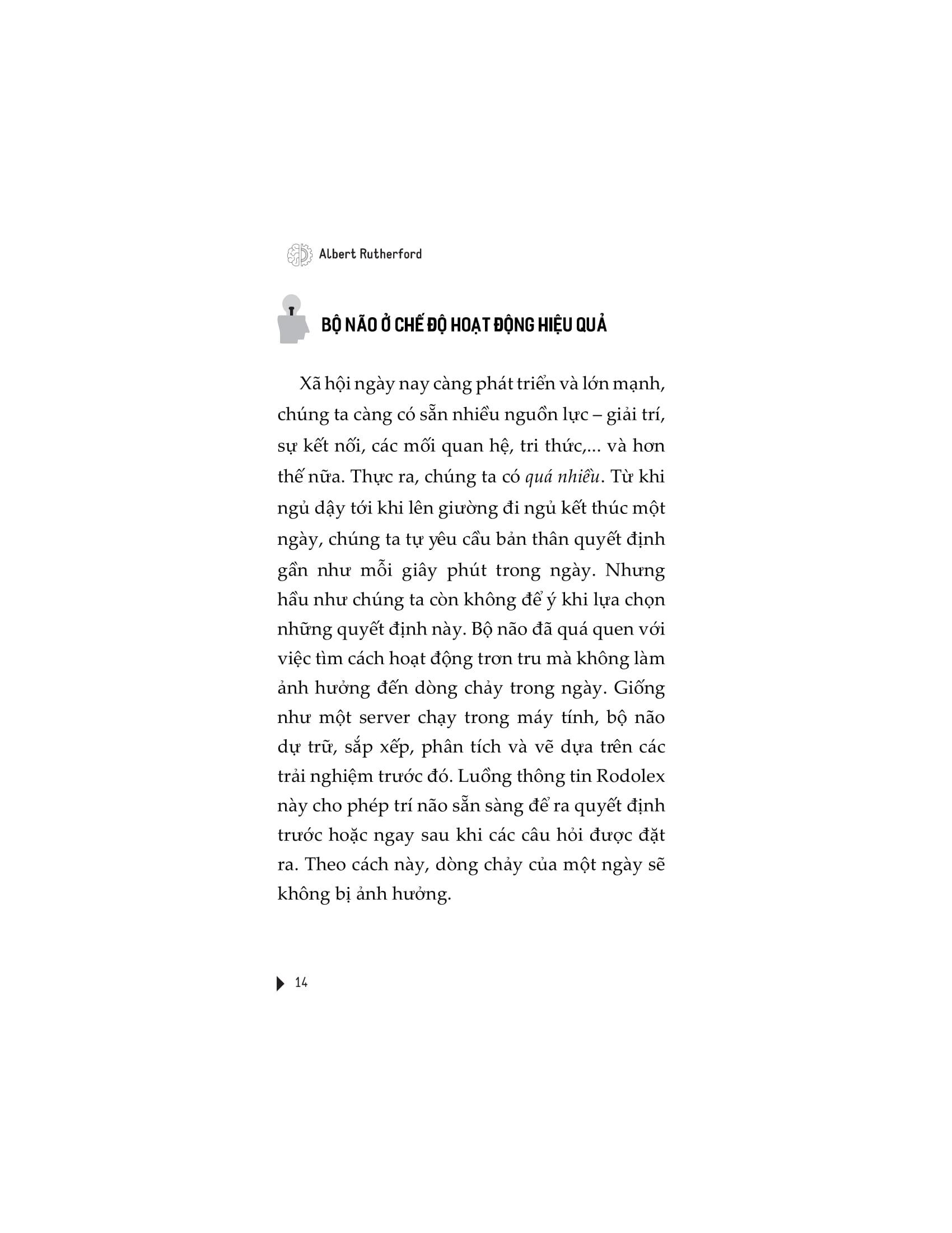 Cuộc sống hằng ngày của chúng ta chứa đầy những quyết định và giải pháp kém hoặc không hiệu quả. Bị choáng ngợp bởi mức độ lớn của các vấn đề khiến chúng ta khó có thể suy nghĩ rõ ràng. Nhưng tin tốt là chúng ta hoàn toàn có thể áp dụng các thuật toán máy tính vào các vấn đề hằng ngày dù là nhỏ nhất. Rất nhiều các quyết định của chúng ta trong cuộc sống dường như được đưa ra ngẫu nhiên hoặc dựa vào các ý nghĩ bất chợt. Nhưng kể cả những hành động phi lý nhất của chúng ta cũng đều có công thức. Đó là sự logic của tâm trí. Nếu bạn cảm thấy rằng bản thân đang không sống đúng với tiềm năng của mình, luôn phải đấu tranh với việc đưa ra quyết định trong mọi tình hướng, thì cuốn sách này viết ra để dành cho bạn! Thông tin tác giả: Albert Rutherford tin vào sứ mệnh chia sẻ những bài học vô giá về các phương pháp tư duy mà ông đã tích lũy được trong suốt cuộc đời nghiên cứu và học tập. Biến những kiến thức này theo cách dễ tiếp cận, phù hợp và thiết thực cho mọi người, Albert tin rằng thế giới của chúng ta phức tạp và liên kết với nhau hơn bao giờ hết. Do đó, việc học cách tự suy nghĩ, đưa ra quyết định đúng đắn và rút ra kết luận chính xác từ lượng thông tin ngoài kia quan trọng hơn bao giờ hết. Ông luôn giữ cho mình bận rộn với vai trò là một tác giả. Khi rảnh rỗi, ông thích dành thời gian cho gia đình, đọc các bài báo khoa học mới nhất hay dành thời gian câu cá. Ông có cùng quan điểm với Benjamin Franklin là: “Đầu tư vào kiến thức luôn mang lại lợi ích tốt nhất.”