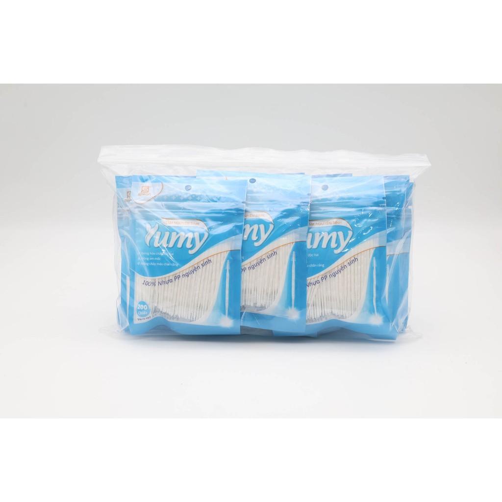 Tăm nhựa Yumy túi zipper 200pcs TN11-133. Tăm xỉa răng nhựa YUMY loại cao cấp, đầu nhọn không gãy, thân mềm dẻo, thiết kế chống trơn tuột khi dùng. Mỗi túi zip có 200 cây – combo 12 túi tiện lợi cho cả gia đình, quán ăn, nhà hàng.