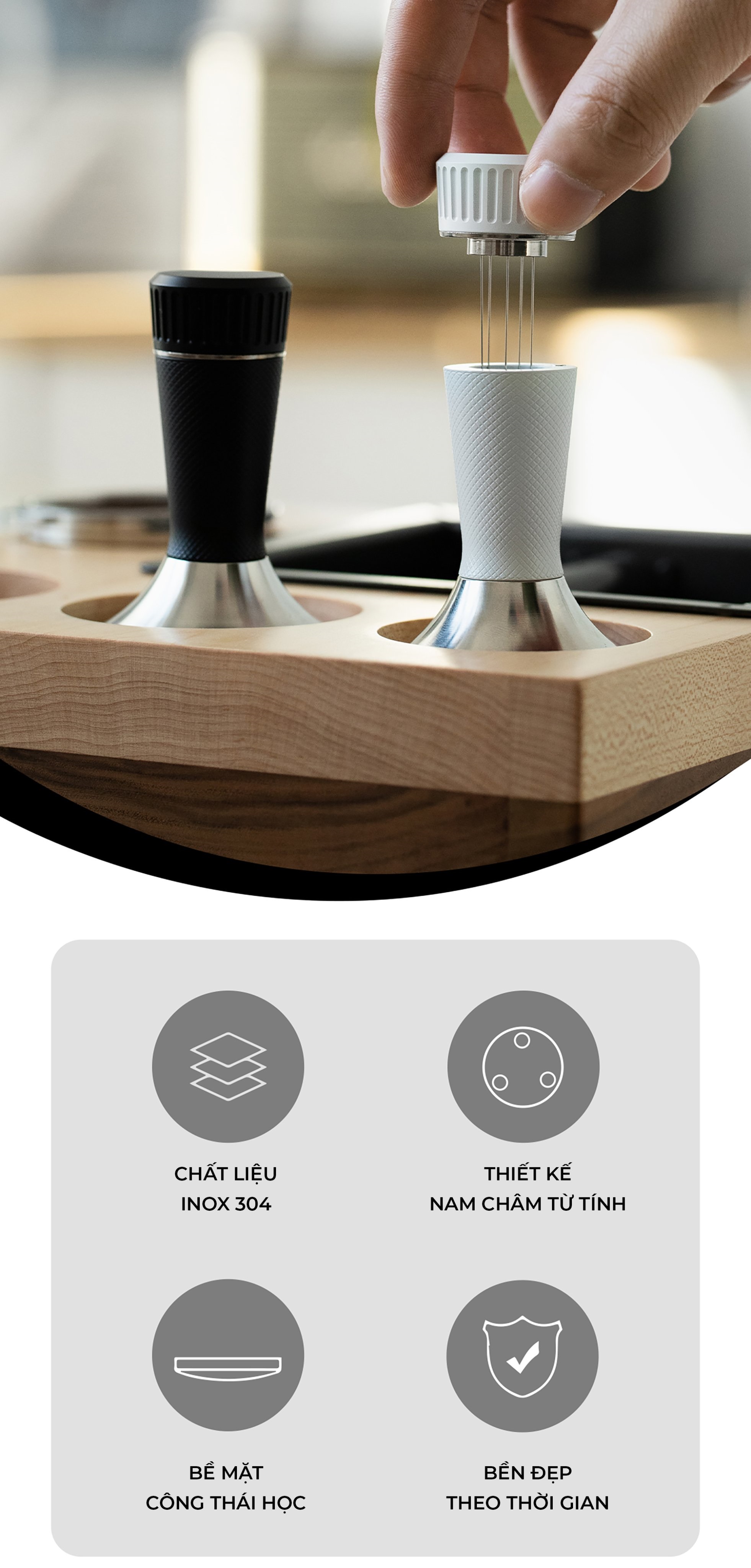 ĐẾ NÉN CÀ PHÊ GỖ ÓC CHÓ NAM MỸ – SỰ LỰA CHỌN HOÀN HẢO CHO BARISTA CHUYÊN NGHIỆP Bạn đang tìm kiếm đế nén cà phê vừa sang trọng, chắc chắn, vừa hỗ trợ