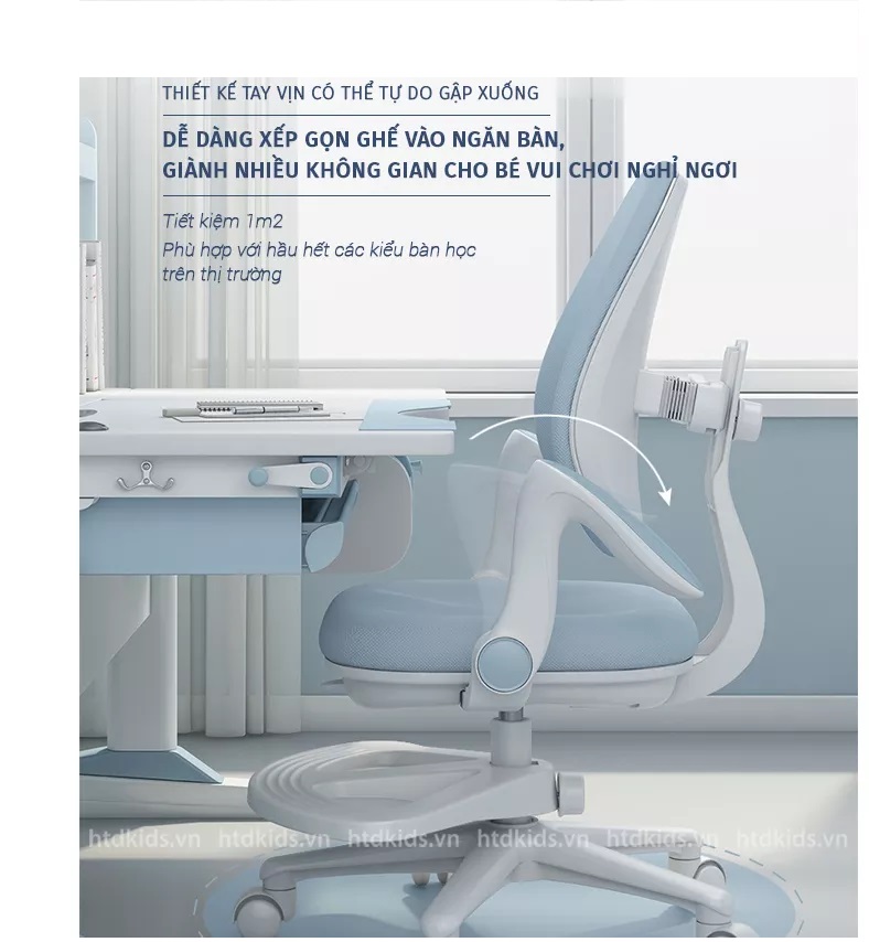 Ghế xoay trẻ em màu xanh dương CE1013-M Nội thất Capta Ghế ngồi học bài màu xanh dương cho bé trai lưng lưới nệm vải có tay tựa màu trắng - Chất liệu: nệm và