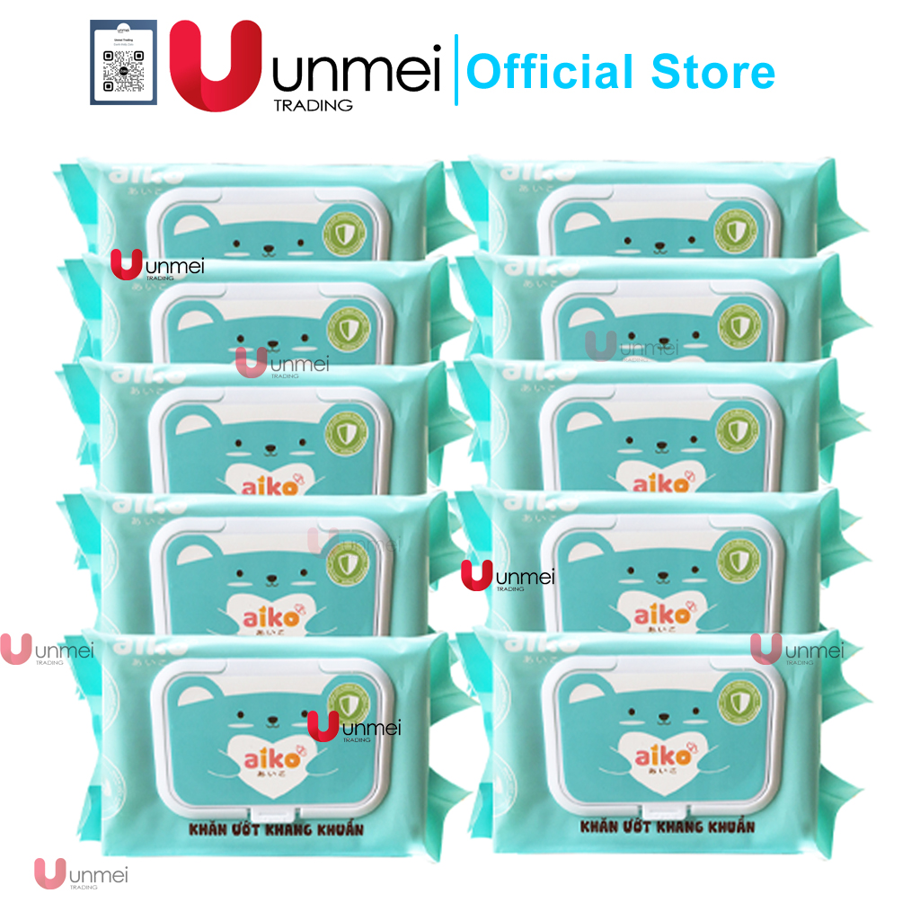 ✨[Tặng Kèm Giá Siêu Rẻ] Combo 10 Gói Khăn Ướt Aiko Kháng Khuẩn Xanh/Khăn Ướt Không Mùi Hồng 100 tờ/gói