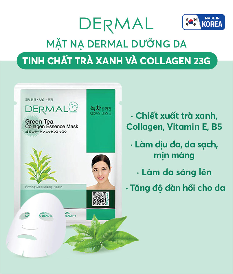 Mặt nạ dưỡng da tinh chất trà xanh là sự kết hợp giữa collagen và tinh chất trà xanh giúp ngăn ngừa quá trình lão hóa, ngừa mụn kháng viêm, làm sạch da.