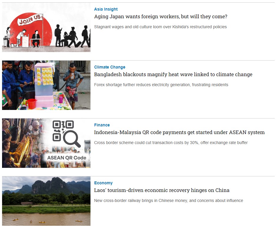 Nikkei Asia là tạp chí bằng tiếng Anh rất uy tín của Nikkei - Nhật Bản, chuyên viết về Xu hướng khu vực châu Á - Thái Bình Dương, Kinh tế, Công nghệ, Chính trị,