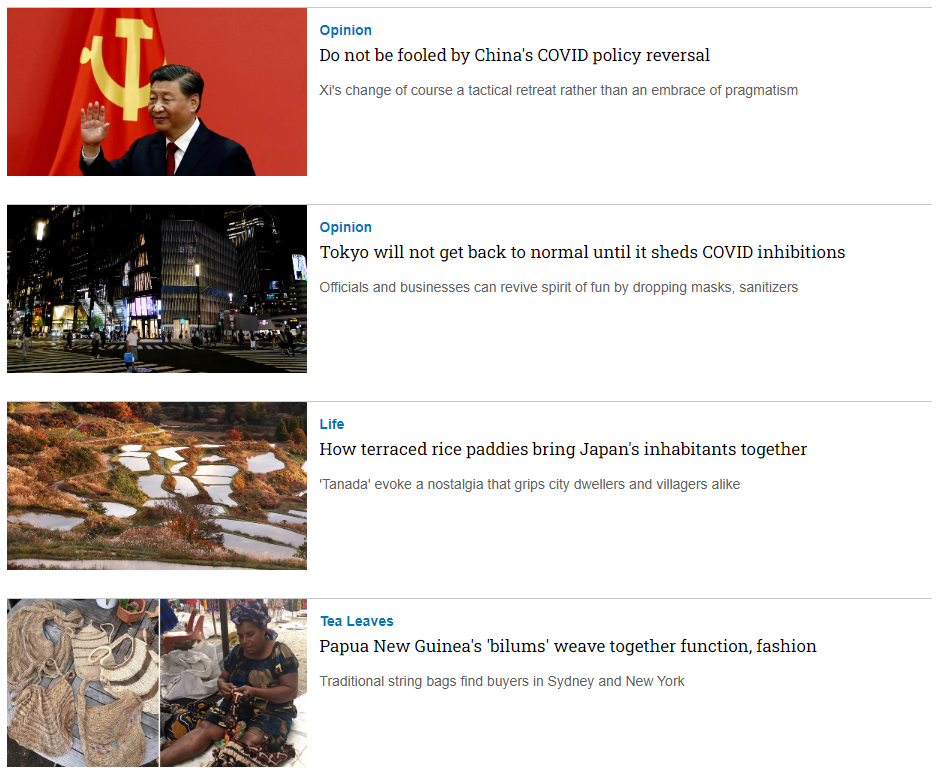 • Là thương hiệu truyền thông lớn và được kiểm duyệt nội dung hằng tuần với dạng thông tin chính thống, được thu thập từ các phóng viên uy tín trên toàn Châu Á, là nguồn trích xuất cho nhiều nhà báo tại Việt Nam.