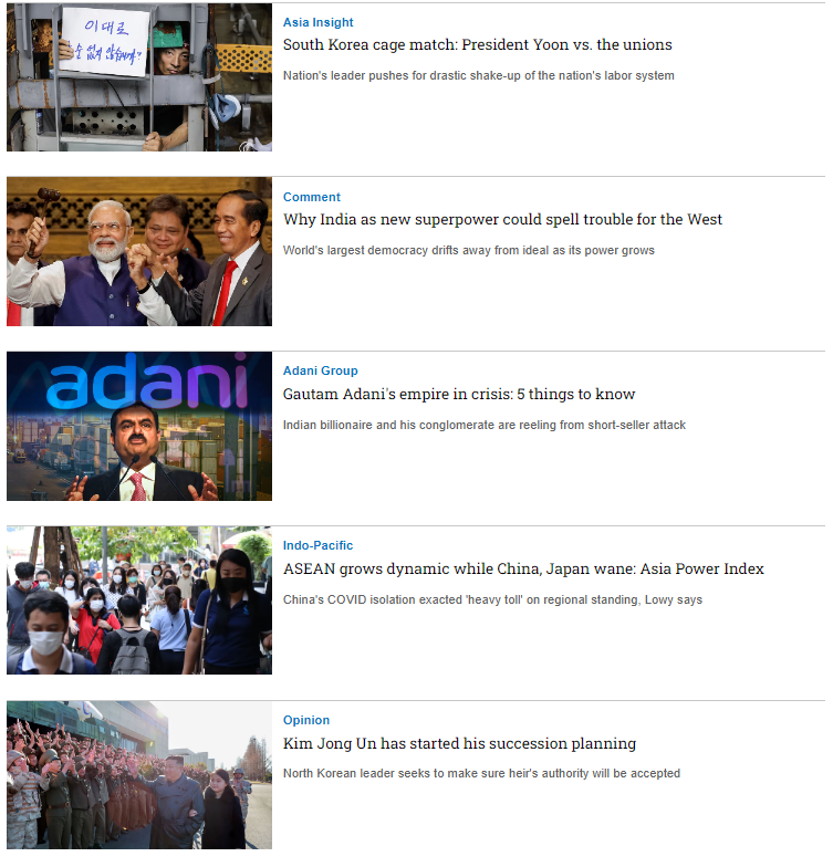 Nikkei Asia là tạp chí bằng tiếng Anh rất uy tín của Nikkei - Nhật Bản, chuyên viết về Xu hướng khu vực châu Á - Thái Bình Dương, Kinh tế, Công nghệ, Chính trị,
