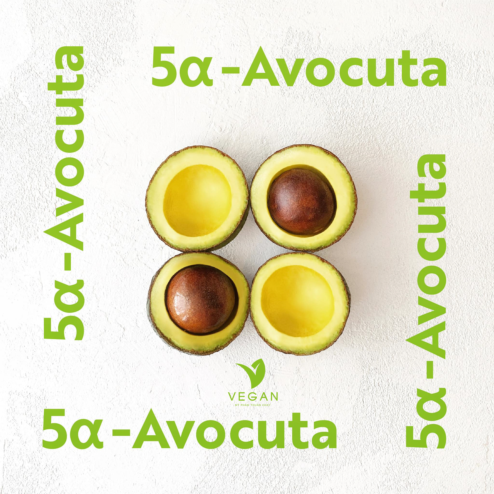 - 5α-AVOCUTA: là một thành phần hoạt chất tự nhiên chiết xuất từ dầu bơ giúp làm dịu da và điều chỉnh sự bài tiết bã nhờn bằng cách ức chế hoạt động của enzyme 5α-reductase
