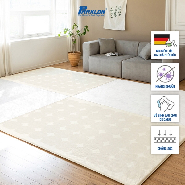Thảm Trẻ Em Hàng Đầu Thế Giới Nhập Khẩu Chính Hãng Hàn Quốc Parklon Thương hiệu: Parklon Xuất xứ: Hàn Quốc Chất liệu: Nhựa PVC Họa tiết: Milo Beige / Màu Be Trơn Kích