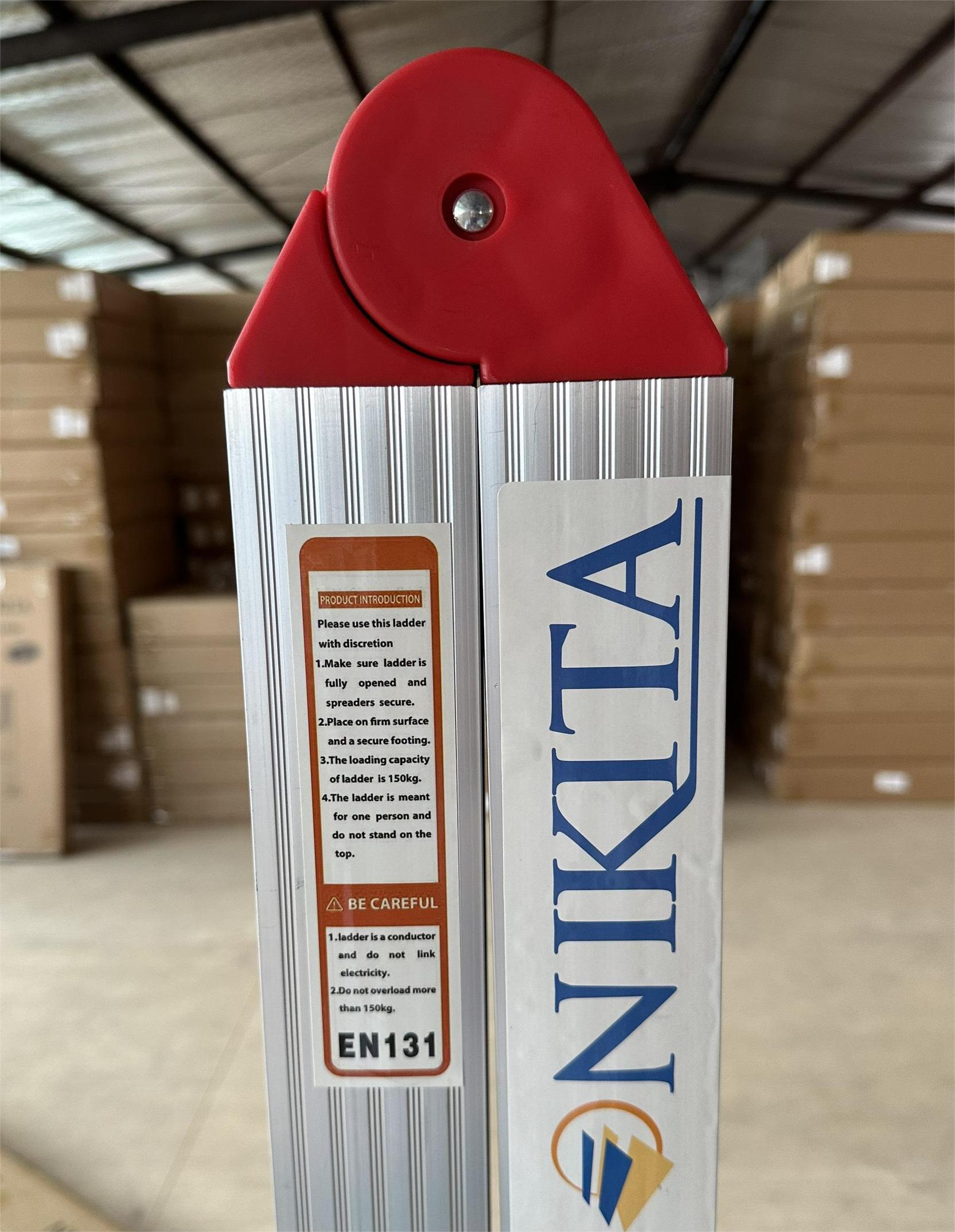 Thang nhôm Nikita NKT- NIKA20 Số lượng bậc: 6 bậc mỗi bên Chiều cao duỗi thẳng chữ I: 4 m Chiều cao chữ A : 1.9 m Trọng lượng: 7.2kg Công nghệ dập