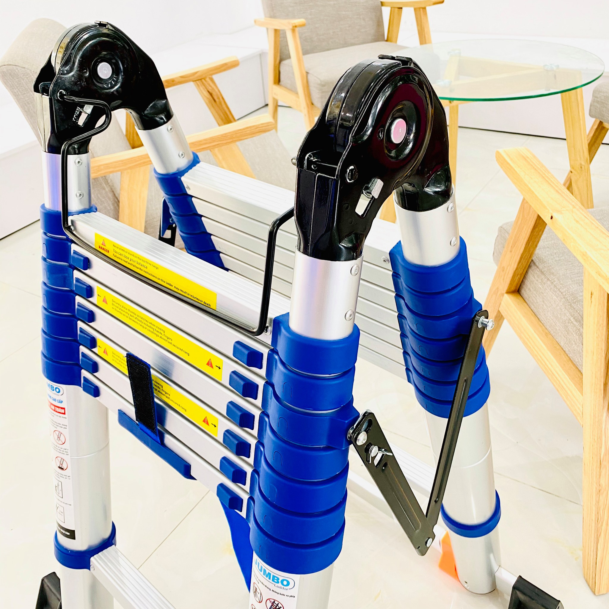 Đặc điểm nổi bật của Thang rút nhôm đôi JUMBO A190B – Thang rút nhôm đôi JUMBO A190B được nhập khẩu 100% từ nước ngoài, và được sản xuất trên công nghệ dây chuyền hiện đại