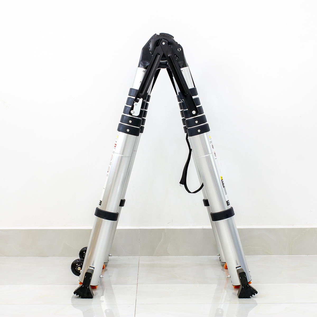 - Thông số kĩ thuật: – Sản phẩm được thiết kế chất liệu khóa nhựa chắc chắn và an toàn. – Thang rút có khóa gấp tự động – Chiều cao tối đa chữ A: 1.83m, – Chiều cao tối đa duỗi thẳng (chữ I): 3.8m – Chiều cao rút gọn: 85cm, – Trọng lượng: 15,1kg, – Số bậc: 2×6 bậc – Chất liệu: Nhôm – Độ dày nhôm: 1,3-1,5 mm – Tải trọng: 300kg, tiêu chuẩn EN131 Quy tắc sử dụng an toàn đối với Thang