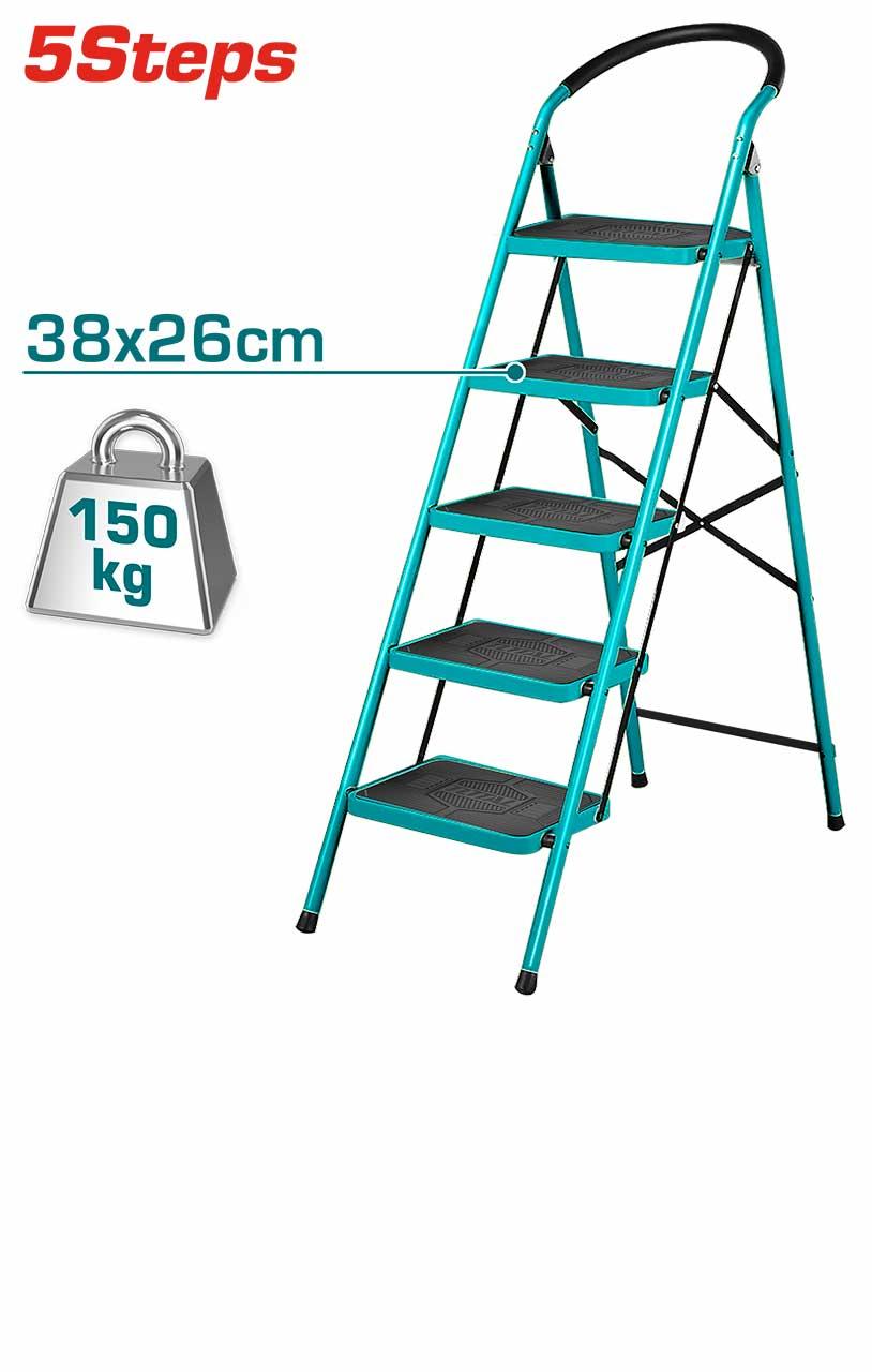 -Chất liệu bằng thép, Năm bậc thang, Kích thước mỗi bậc thang: 380260mm, kích thước khi mở thang: 10304901515mm, khả năng tải: 150 kg, Đóng gói trong thùng carton - 2/T