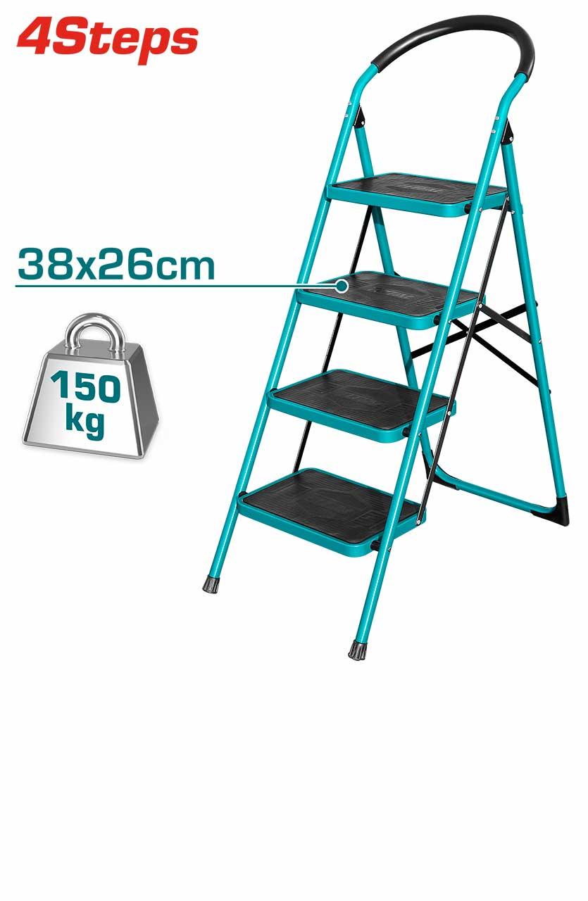 -Chất liệu bằng thép, Bốn bậc thang, Kích thước mỗi bậc thang: 380260mm, kích thước khi mở thang: 8304901290mm, khả năng tải: 150 kg, Đóng gói trong thùng carton - 4/T