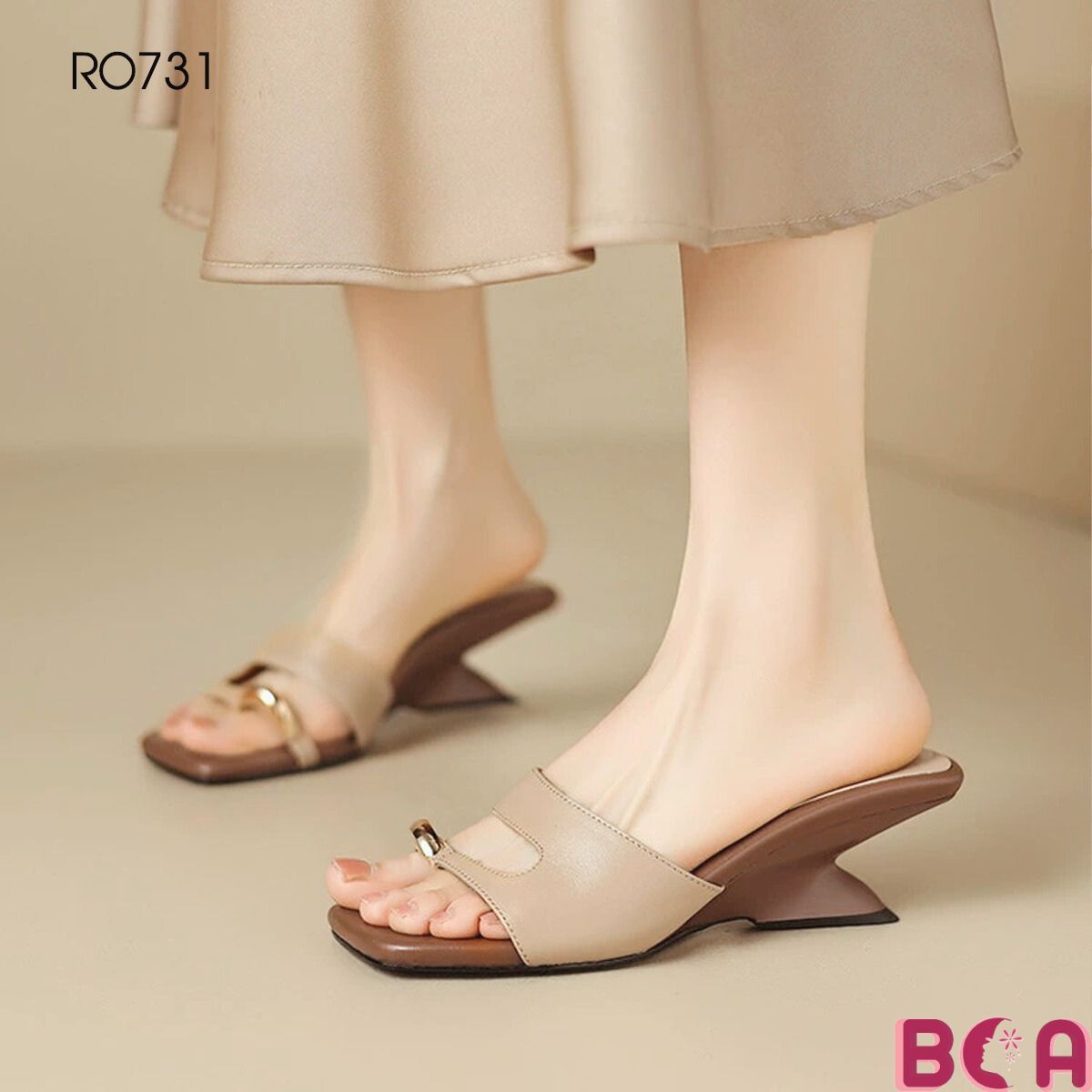 Dép guốc nữ RO731 – Đế xuồng 5cm, da PU cao cấp, sang trọng và êm áiBạn đang tìm một đôi dép guốc vừa đẹp vừa thoải mái để đi cả ngày?RO731 với đế xuồng 5cm giúp tôn dáng, kéo dài đôi chân tự nhiê...