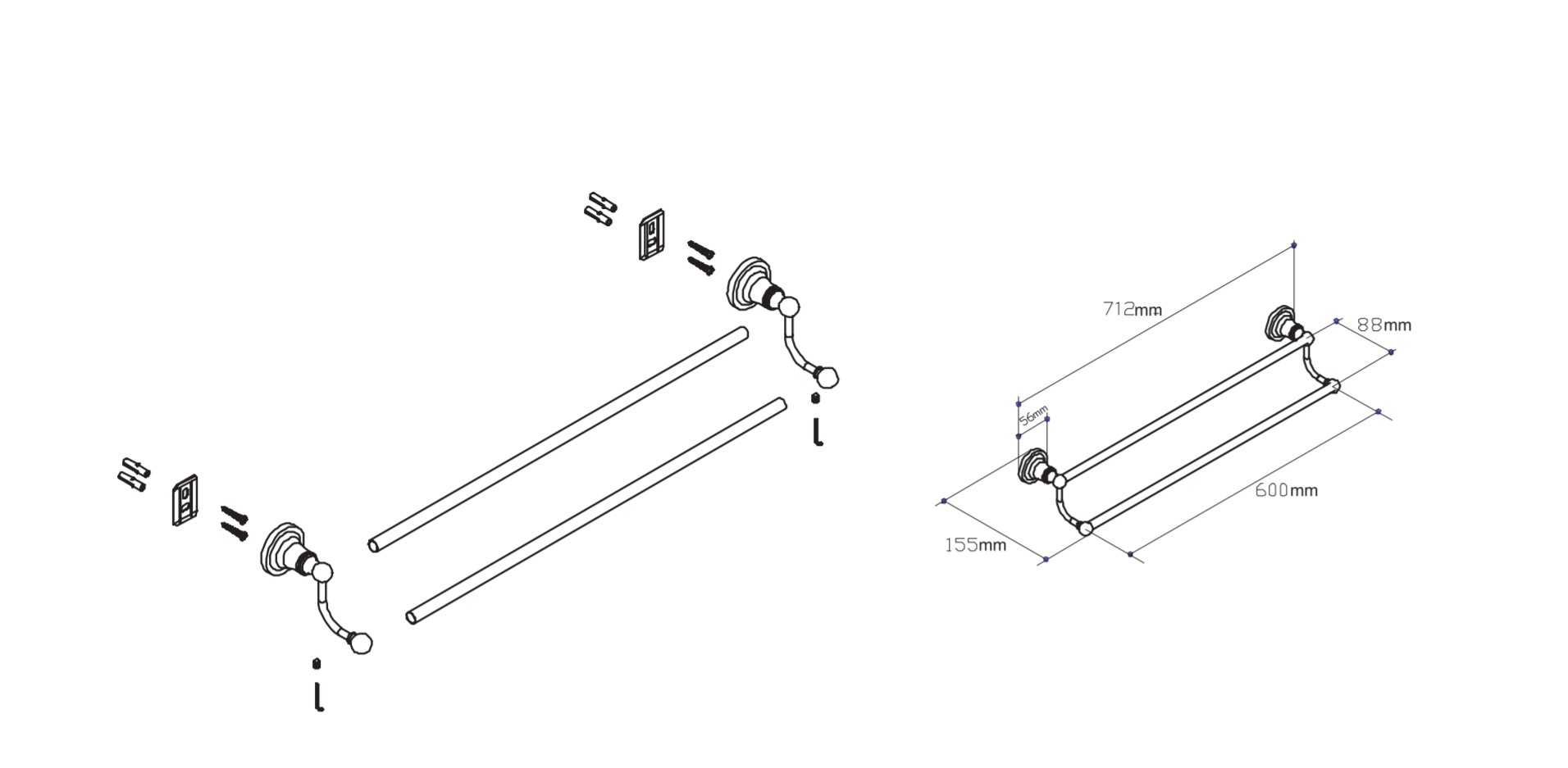 Thanh Đôi Treo Khăn Nhà Tắm Bằng Inox 304 Không Gỉ Bắt Ốc - Kèm đầy đủ phụ kiện - Chất liệu inox 304 không gỉ, bền bỉ - Thanh đôi inox treo khăn nhà