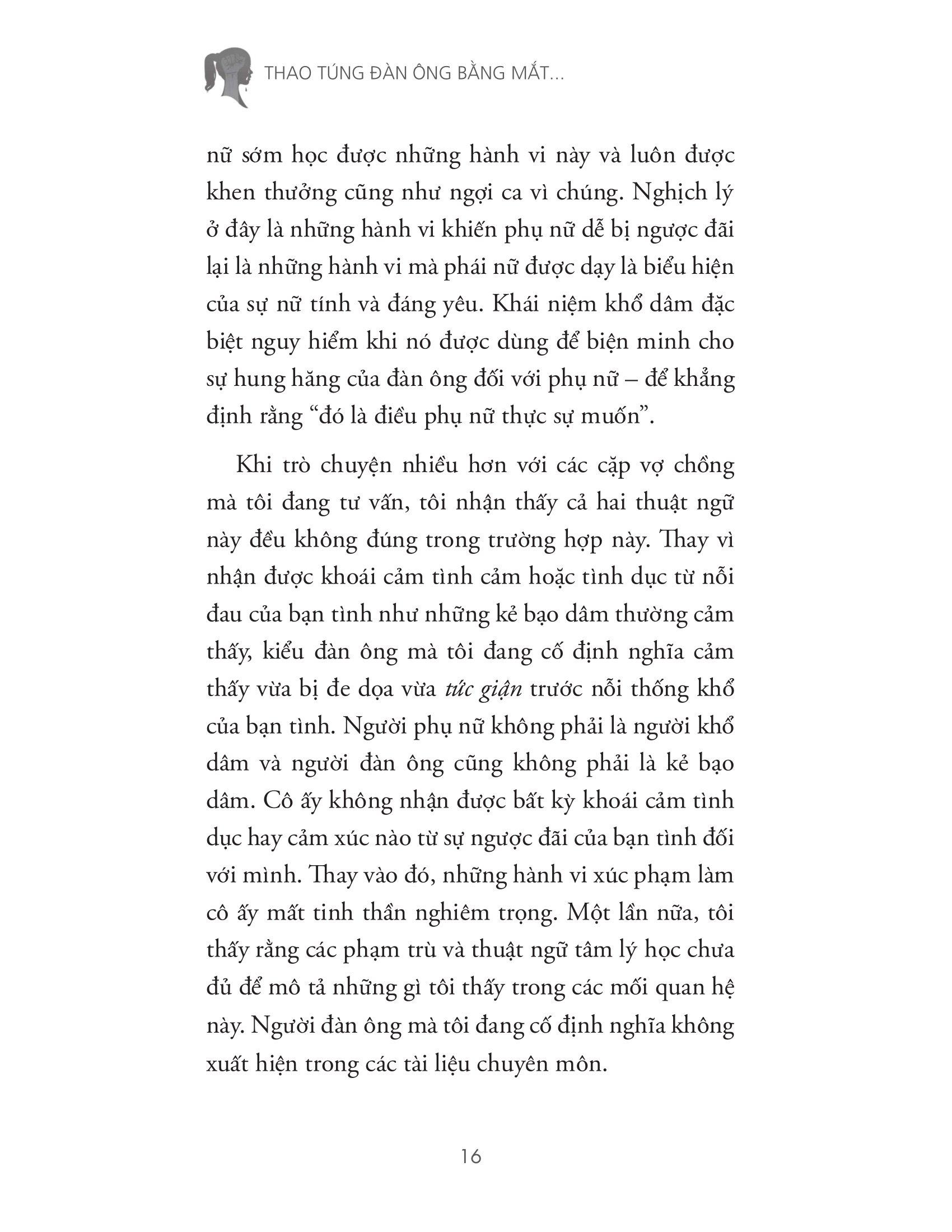 Nếu câu trả lời của bạn là có, thì Thao túng đàn ông bằng mắt, thao túng đàn bà bằng tai là cuốn sách bạn nên đọc. Bằng nhiều năm kinh nghiệm tư vấn tâm lý, tác giả Susan Forward sẽ đưa ra những ví dụ vô cùng chi tiết, các lời giải thích rõ ràng và nhiều bài tập để giúp bạn nhận ra bản chất thật của mối quan hệ, xây dựng góc nhìn mới về bản thân, từ đó thay đổi và chữa lành những tổn thương bạn đã phải chịu đựng.