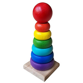 + Mô tả Tháp cầu vòng xếp chồng 7 tầng: - Tháp gồm đế gỗ, cọc gỗ, 6 đĩa màu kích thước khác nhau và 1 núm tròn trên đỉnh. + Độ tuổi phù hợp: