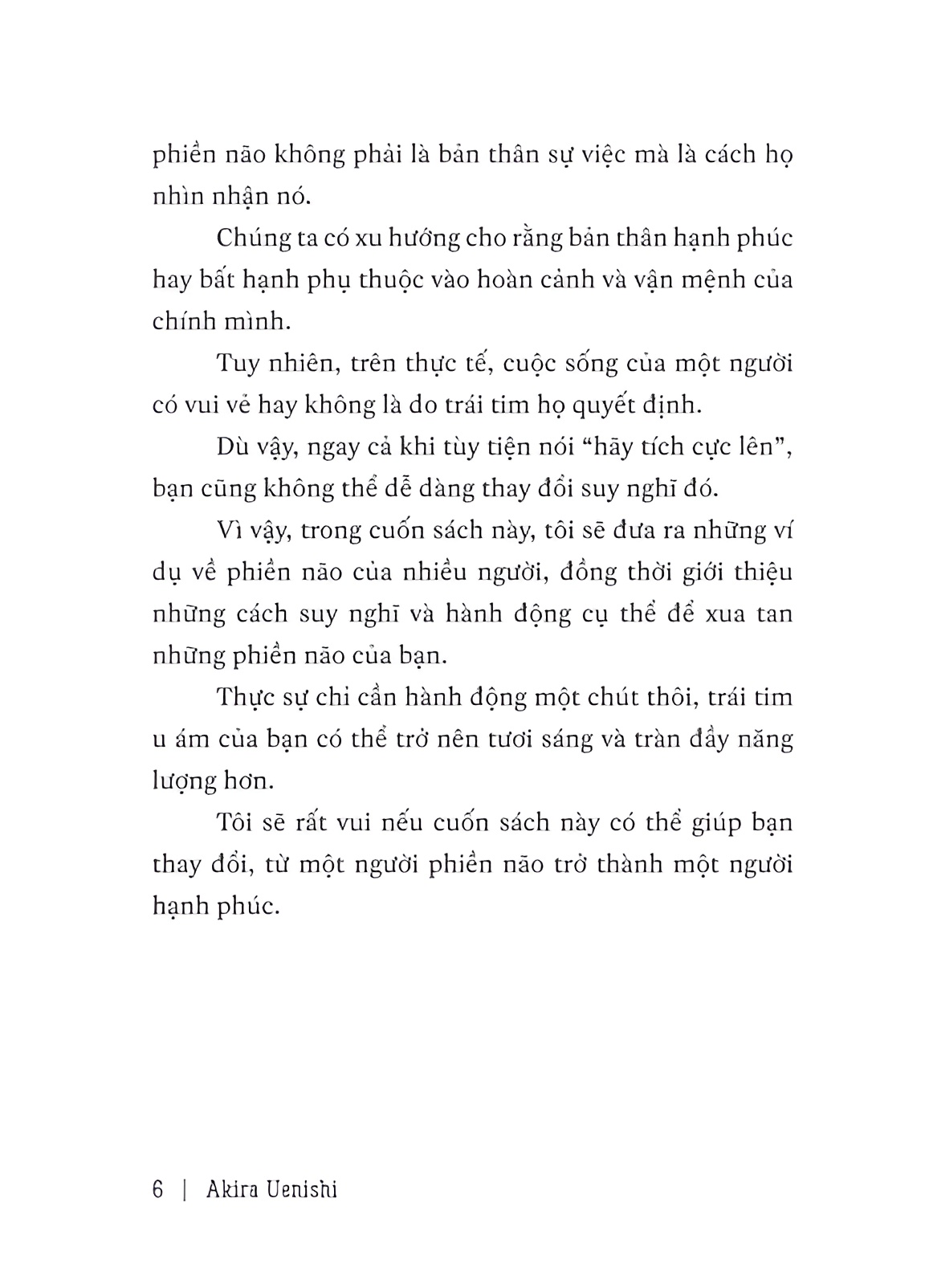 - Sách bìa keo tay gấp. Giới thiệu Thay Đổi Góc Nhìn Để Thấy Điều Kỳ Diệu Dù bị đặt vào hoàn cảnh giống hệt nhau, thì có người không hề gặp phiền não gì và cũng có người gặp phiền não nghiêm trọng. Bởi điều khiến mọi người phiền não không phải bản thân sự việc, mà là cách họ nhìn nhận nó. Chúng ta có xu hướng cho rằng bản thân hạnh phúc hay bất hạnh phụ thuộc vào hoàn cảnh và vận mệnh của chính mình. Tuy nhiên, trên thực tế, cuộc sống của một người có vui vẻ hay không là do trái tim họ quyết định. Cuốn sách THAY ĐỔI GÓC NHÌN ĐỂ THẤY ĐIỀU KỲ DIỆU sẽ đưa ra những bí quyết giúp bạn thay đổi, từ một người phiền não trở thành một người hạnh phúc.