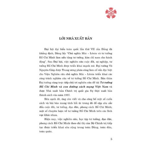 Đại hội đại biểu toàn quốc lần thứ VII của Đảng đã khẳng định, Đảng lấy “Chủ nghĩa Mác - Lênin và tư tưởng Hồ Chí Minh làm nền tảng tư tưởng, kim chỉ nam cho hành động”. Sau Đại hội, việc nghiên cứu cuộc đời, sự nghiệp, tư tưởng Hồ Chí Minh được triển khai mạnh mẽ. Đại tướng Võ Nguyên Giáp được Trung ương phân công làm cố vấn đặc biệt cho Viện Nghiên cứu chủ nghĩa Mác - Lênin triển khai các công trình nghiên cứu về tư tưởng Hồ Chí Minh. Bản thân Đại tướng cũng trực tiếp chủ trì nghiên cứu đề tài Tư tưởng Hồ Chí Minh và con đường cách mạng Việt Nam và được Nhà xuất bản Chính trị quốc gia Sự thật xuất bản thành sách vào năm 1997.