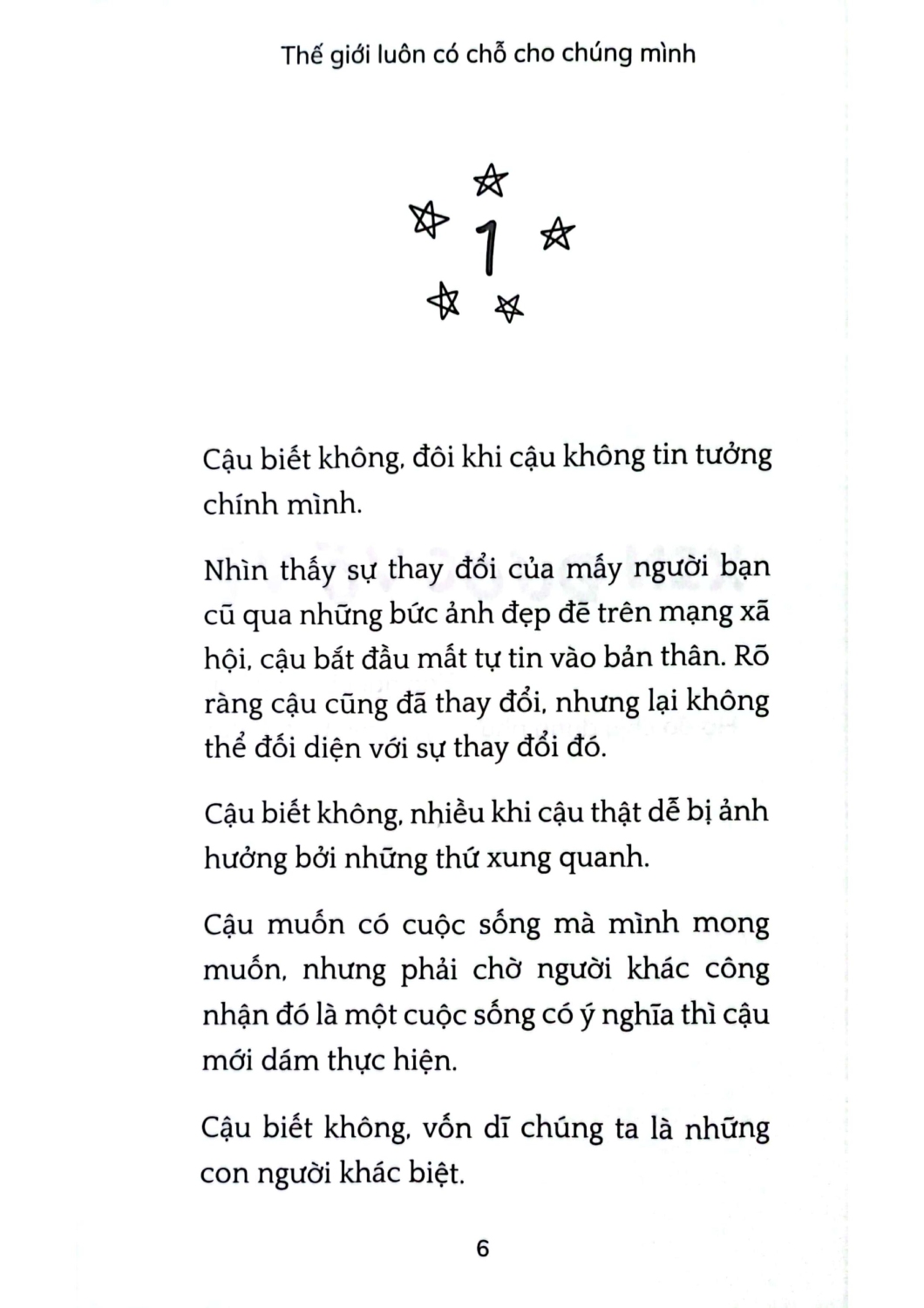 Bạn đã bao giờ cảm thấy thế này chưa? Đôi lúc thấy thế giới thật rộng lớn, đi hoài đi mãi vẫn không tìm được một nơi mình thực sự “thuộc về”. Nhưng lắm lúc lại thấy mảnh đất này thật chật chội, dù đi đến đâu cũng không bỏ lại được những tổn thương. Dường như chúng mình đều là lần đầu tiên đến với thế giới này, lần đầu học cách làm người lớn, lần đầu đối diện với những nỗi đau và học cách đứng lên. Chúng ta đều sẽ mắc sai lầm, nhưng rồi tất cả đều sẽ vượt qua. Thế giới lúc rộng, lúc hẹp, lúc đẹp đẽ, lúc xấu xí… nhưng thế giới luôn có chỗ cho chúng mình.