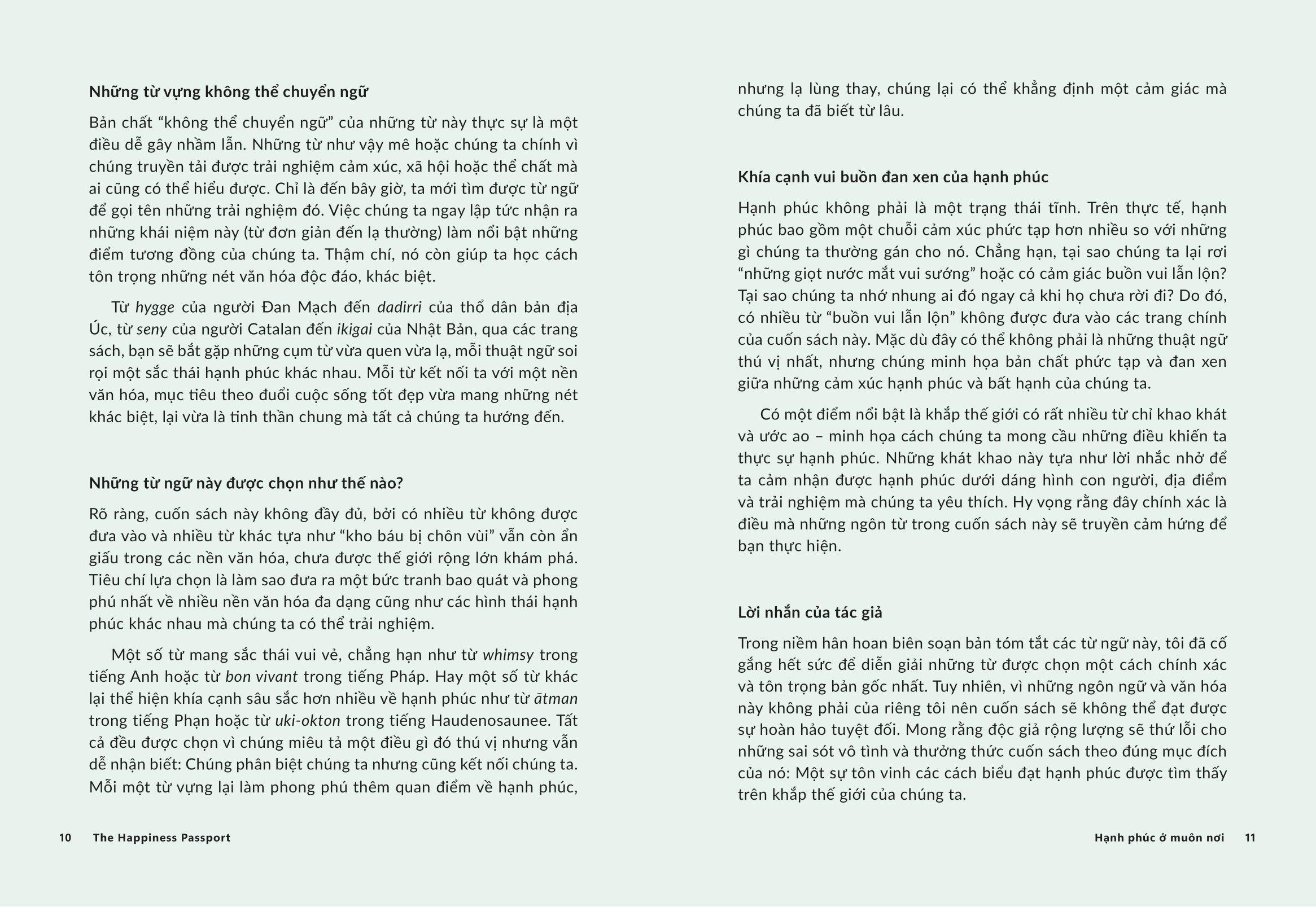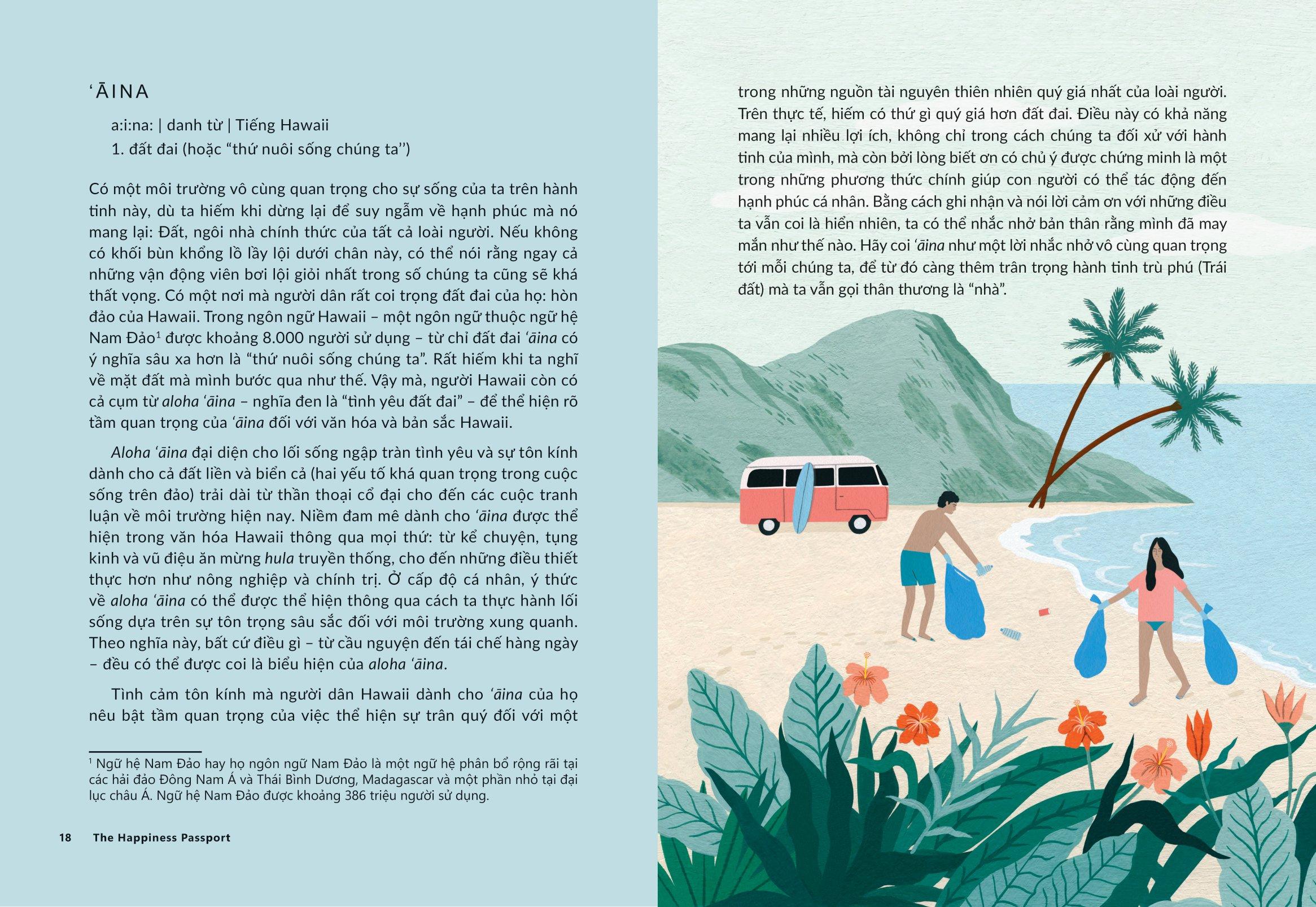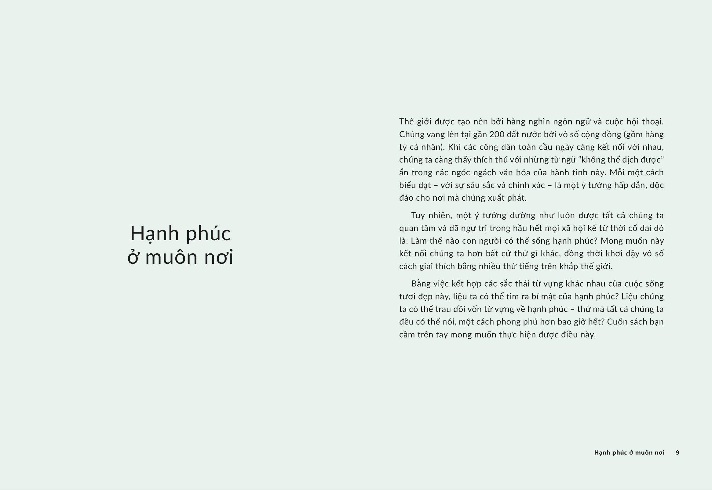 The Happiness Passport – Hành trình tìm kiếm niềm vui qua 50 từ kỳ diệu là một “công trình” nghiên cứu của nhà văn, học giả Megan C Hayes, đào sâu vào kho tàng các cách biểu đạt về hạnh phúc tại hơn 200 quốc gia trên thế giới. Mỗi cách biểu đạt đại diện cho từng nét văn hóa độc đáo của nơi chúng xuất phát, gợi biết bao tò mò nhưng lạ lùng thay lại khẳng định một cảm giác mà có thể bạn đã biết từ lâu.