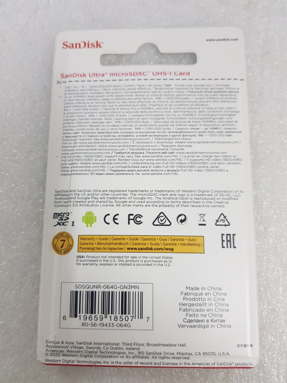 =========================== ✪ Hàng chính hãng Sandisk ✪ Thẻ nhớ tốc độ cao dành cho gaming trên điện thoại ✪ Hỗ trợ dùng cho máy điện thoại, máy tính bảng, camera IP ✪ Dung lượng 64GB: