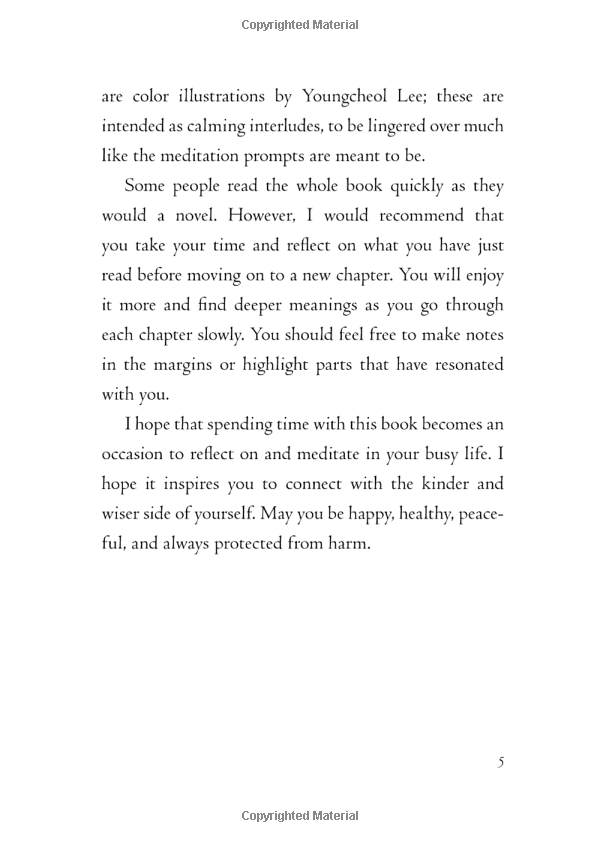 By offering guideposts to well-being and happiness in eight areas — including relationships, love, and spirituality — Haemin Sunim emphasizes the importance of forging a deeper connection with others and being compassionate and forgiving toward ourselves. The more than twenty full-color illustrations that accompany his teachings serve as calming visual interludes, encouraging us to notice that when you slow down, the world slows down with you.
