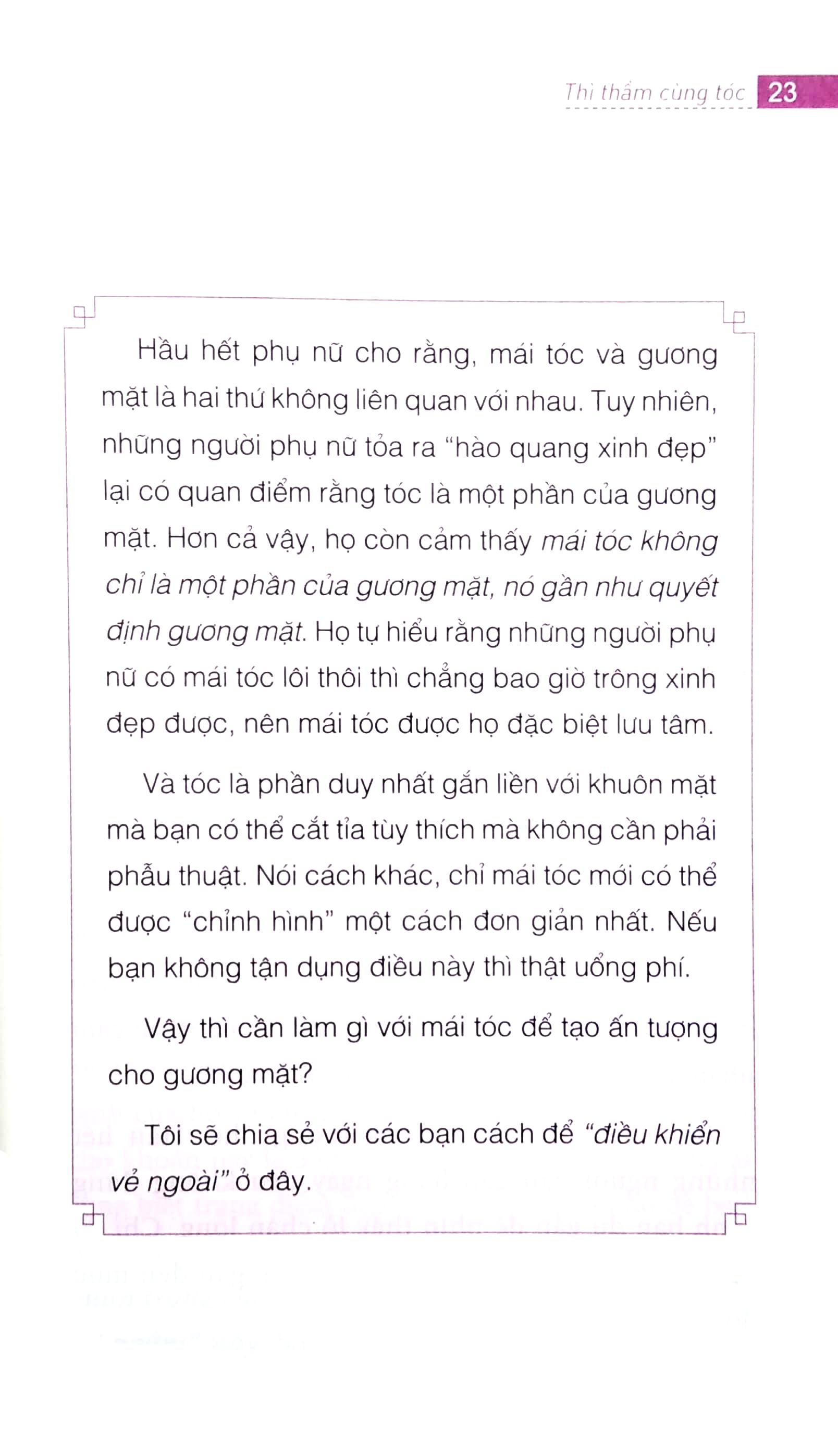 Thì thầm cùng tóc được Yumi Sato viết nên để khai mở những sự thật và những bí quyết để tạo nên một mái tóc đẹp ở người phụ nữ. Quan trọng hơn, Thì thầm cùng tóc sẽ lần đầu tiên hé mở cho độc giả về quyền năng bí ẩn vốn bị xem thường của mái tóc. Cuốn sách sẽ giúp bạn thấy rằng, bạn có thể thay đổi cả vận mệnh đời mình chỉ từ việc thay đổi một kiểu tóc. Và sau đó, những điều kỳ diệu sẽ tự nhiên đến. Bạn sẽ nhận ra, mái tóc có thể ban phép màu .