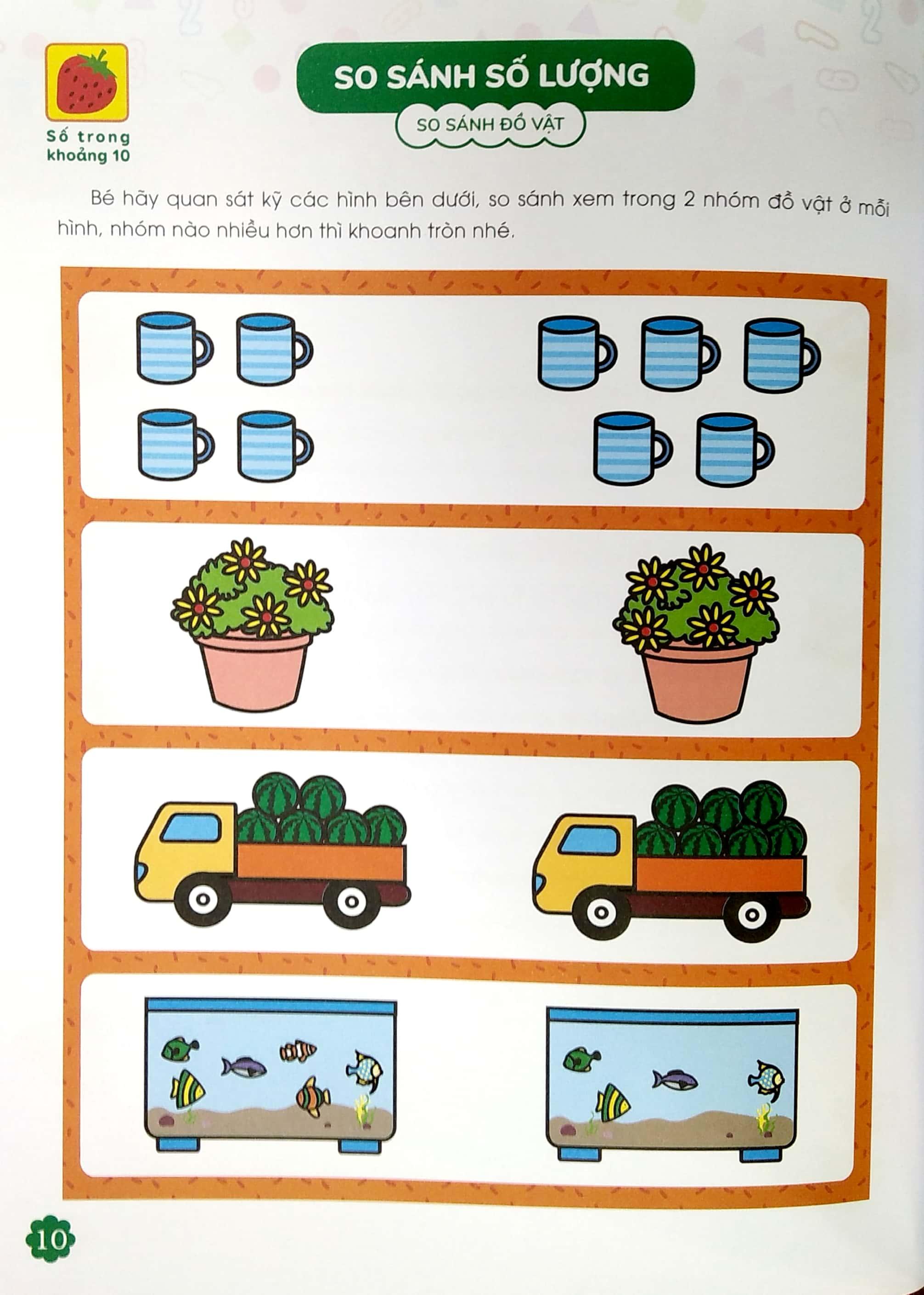 Bộ sách giúp trẻ biết so sánh, phân loại đồ vật, nhận biết các dạng hình học, không gian, thời gian, các con số và phép tính. Trẻ sẽ được gợi mở tiềm năng trí tuệ một cách tự nhiên nhất thông qua các bài tập với nhiều hình ảnh các con vật đáng yêu, trái cây giàu màu sắc, vật dụng quen thuộc hàng ngày, Các bậc phụ huynh sẽ không khỏi ngạc nhiên khi thấy các bé làm bài tập hoài mà không biết chán!