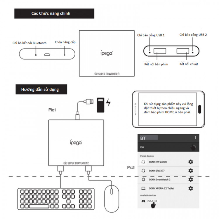 Sản phẩm được sử dụng chủ yếu để kết nối bàn phím và chuột để chơi trò chơi trên các thiết bị Android, Ios.