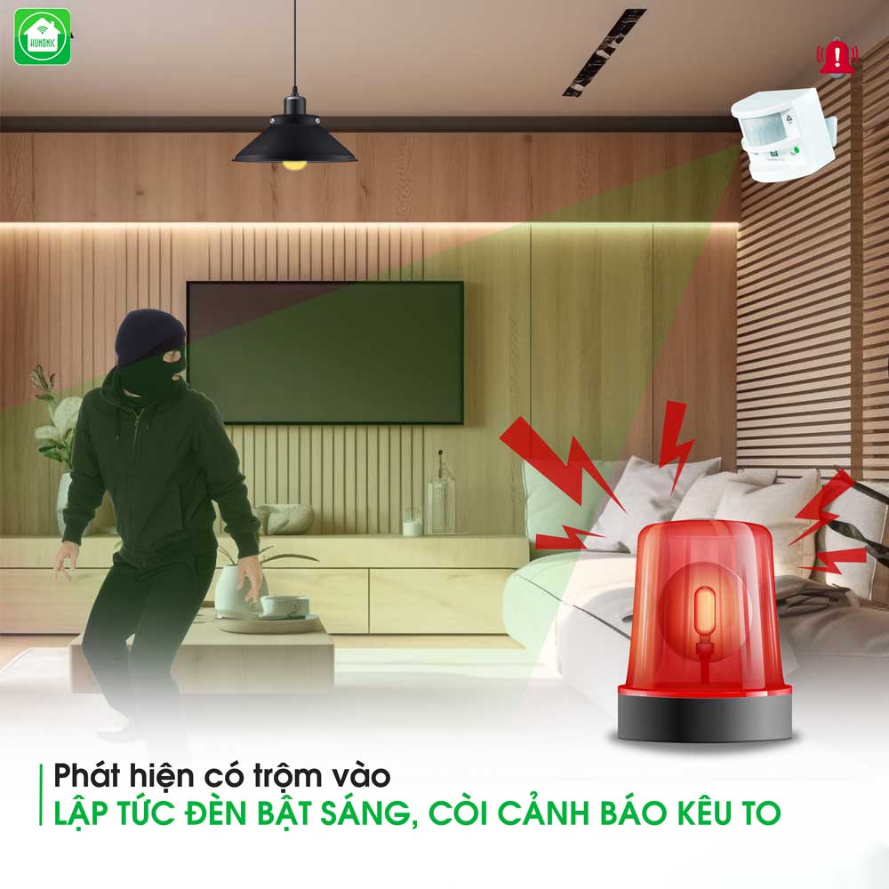 - Phát hiện chuyển động, hú còi cảnh báo.