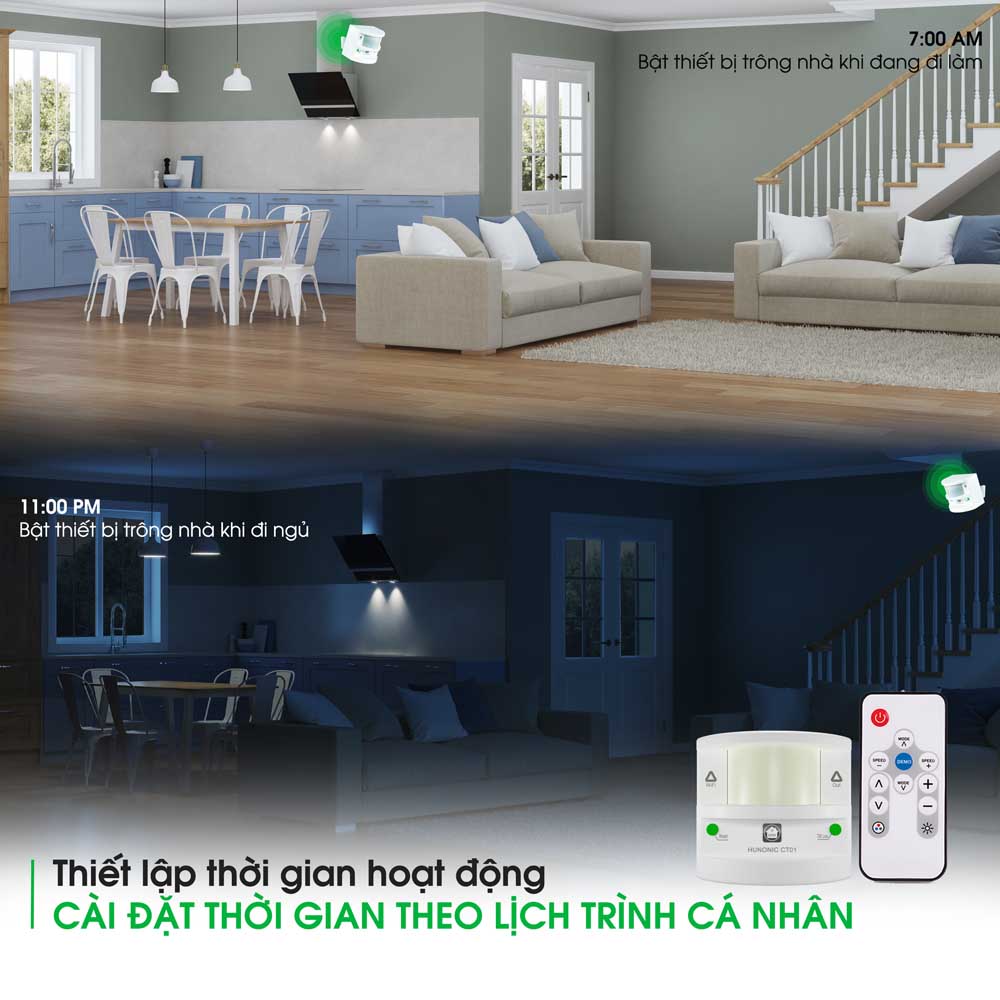 Cảm biến bật đèn - Báo trộm, báo khách cao cấp Hunonic CT01 đầu ra 220V