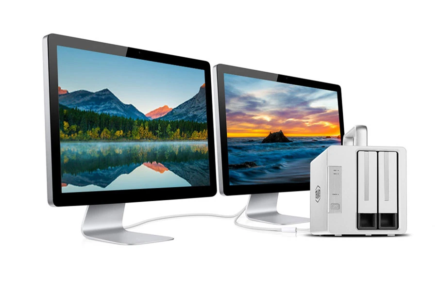 2-bay desktop NAS, Intel Celeron J6412 4C 2.0GHz, burst 2.6GHz, onboard 8GB RAM, 2 x HDMI 1.4b, 2x M.2 2280 PCIe slots, 2x 2.5GbE, 2x USB 3.2 Gen2 Type A, 2x USB 2.0, long term